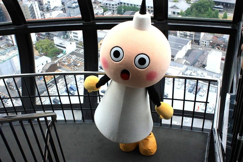 展望室に京都タワーの人気マスコットキャラクター「たわわちゃん」が登場しました。