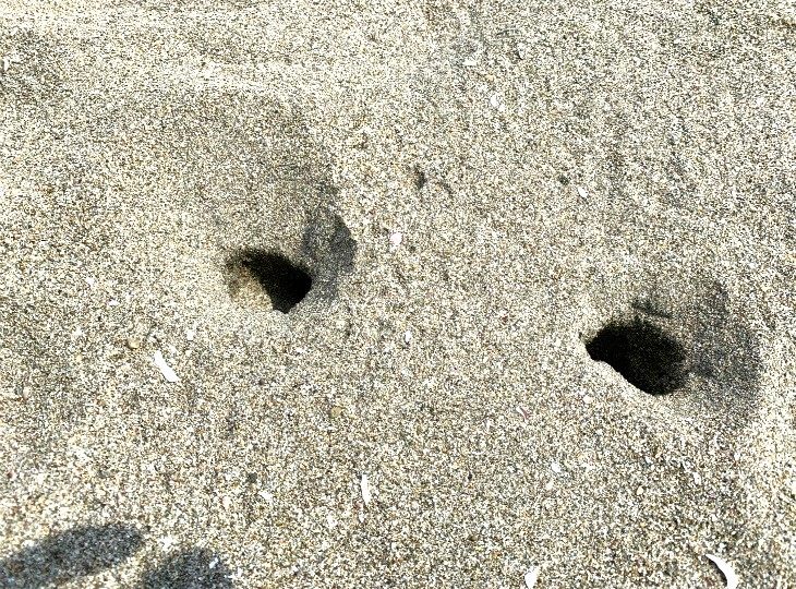 また、砂浜の乾いた場所にはこのような棒を差し込んだ穴みたいなものがありました。