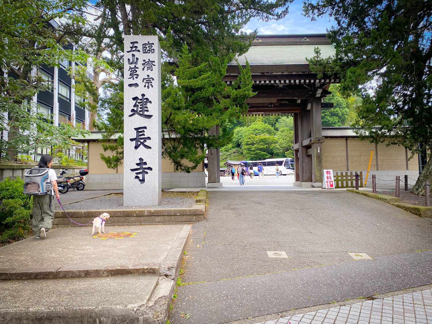 円覚寺を出て、鎌倉方向に15分ほど歩くと建長寺に到着します。こちらは1253年(建長5年)に、鎌倉幕府第五代執権・北条時頼によって創建された臨済宗建長寺派の大本山。建物に関してはワンコ同伴での立ち入りは禁止ですが、境内でのお散歩を楽しむことができます。