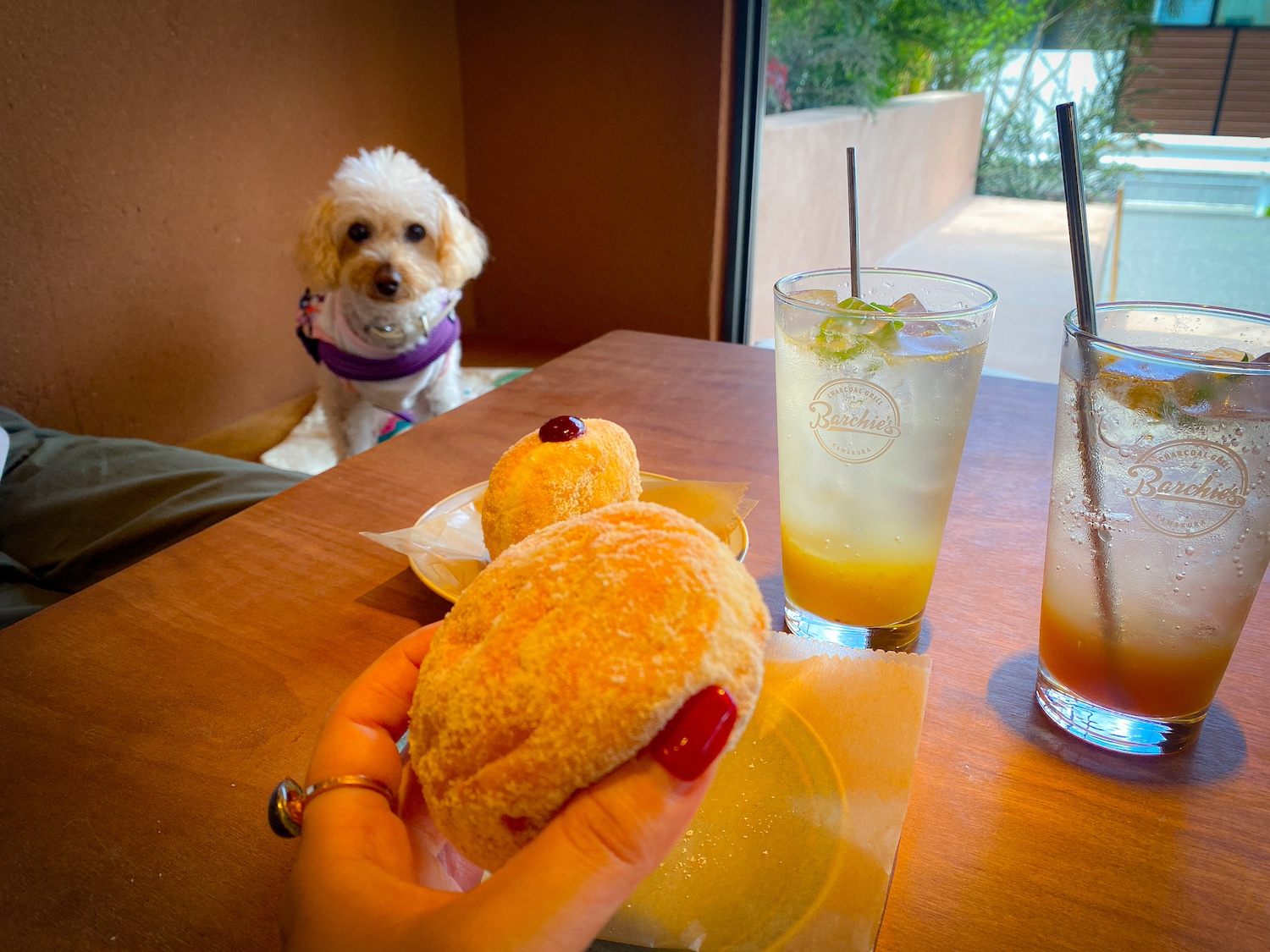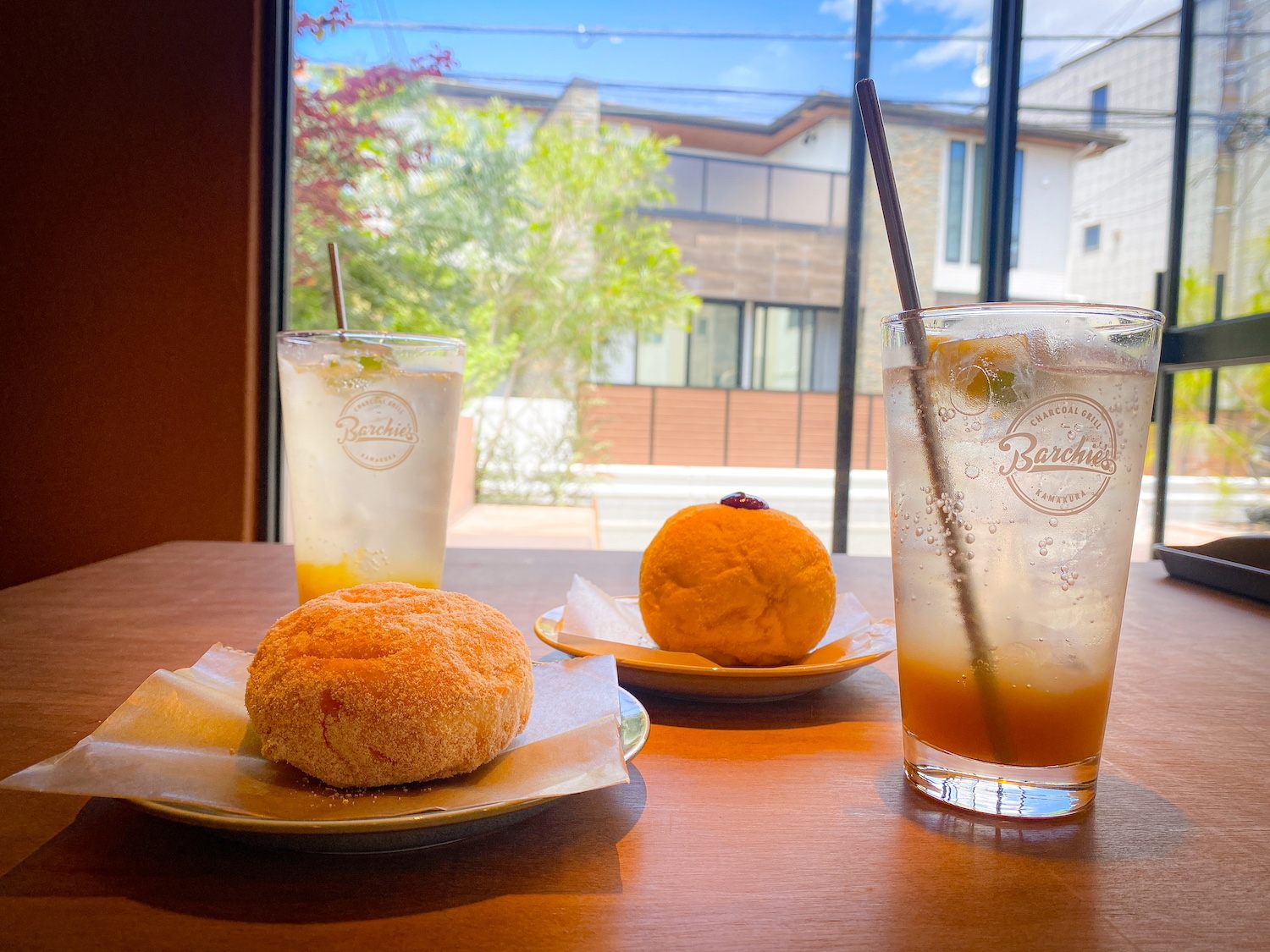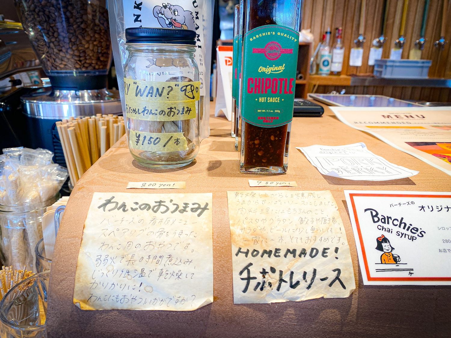 レジ横には、「わんこのおつまみ」も置いてあるので、愛犬と一緒においしい時間を楽しめます。こういった細やかな気遣いがうれしいですよね。今回はカフェ利用をさせていただき、ドーナツを注文しました。店内で、一つひとつていねいに揚げているドーナツはふわっふわ。ひと口食べると口の中に優しい甘みが広がります。私も少しお腹が空いていたので、一気に食べ進めてしまいました。