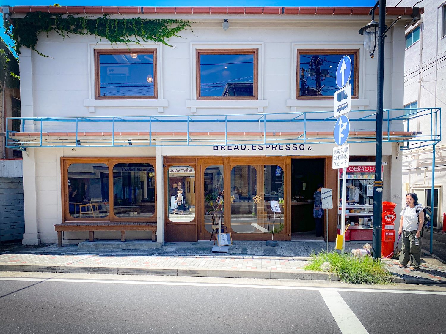 「Barchie’s Spareribs factory」から少し進むと見えてくるのが、「パンとエスプレッソと 由比ガ浜商店」。歩いていると通り過ぎてしまいそうですが、昭和レトロな郵便ポストと「たばこ屋」の店構えが目印です。店内からは食欲をそそるパンの香りが立ち込めます。