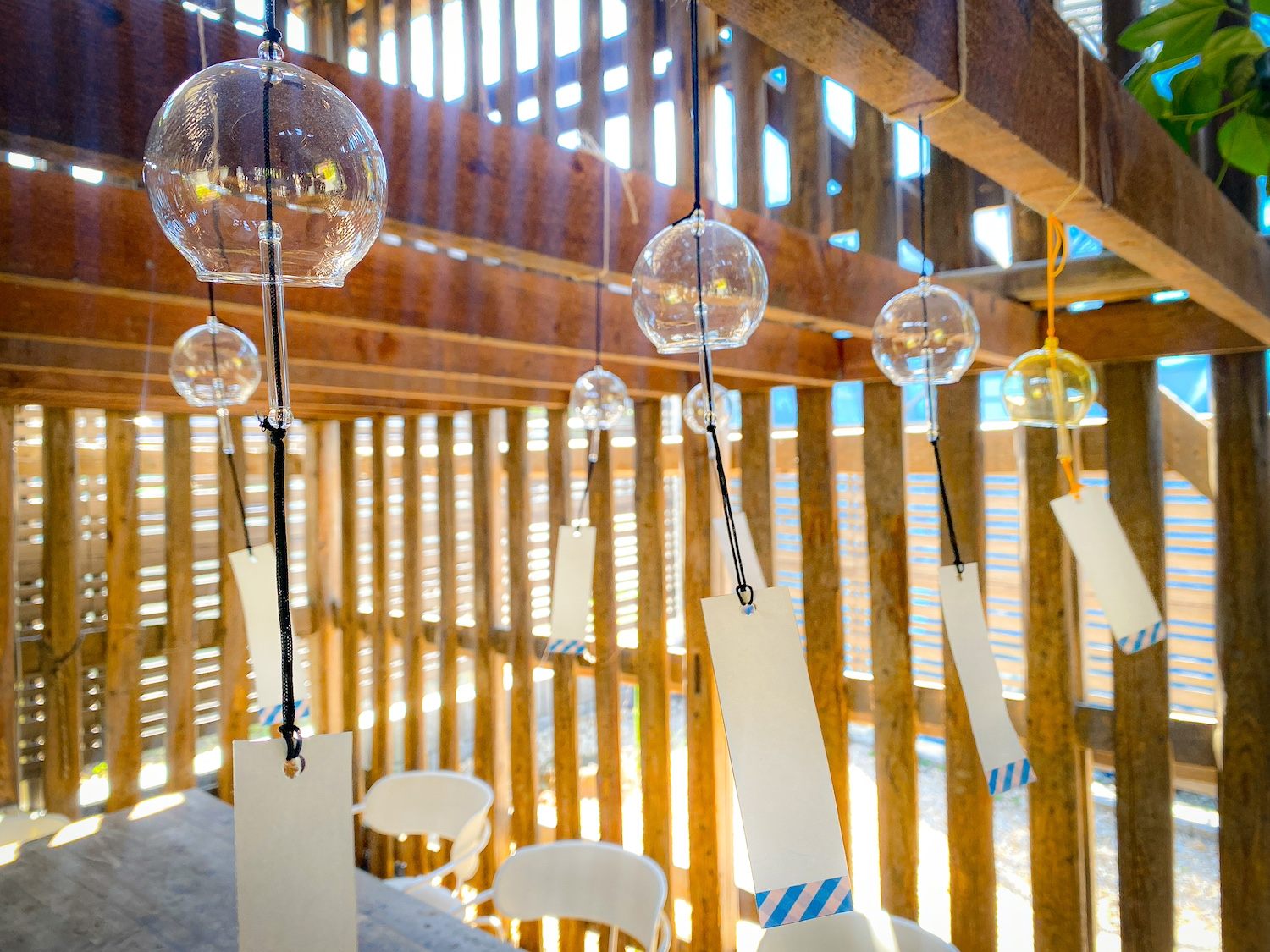 ワンコと一緒に楽しむ場合、店内は通らず、脇道から裏側に回ってテラス席へ。テラス席は大型犬も利用できます。到着すると、どこからともなく風鈴の音が聞こえ涼しげな初夏の雰囲気に包まれました。