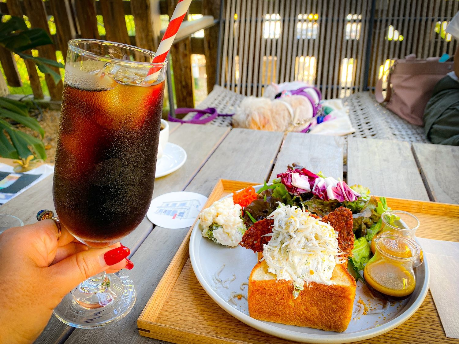 カラスミパウダーで仕上げているのですが、深いうま味とほどよい塩気が絶妙。ついついビールが飲みたくなってしまいます。しらすチーズのおせんべいも、パリパリしていてクセになりそう。鎌倉のいい風が通り抜けるテラス席は、隠れた特等席でした。
