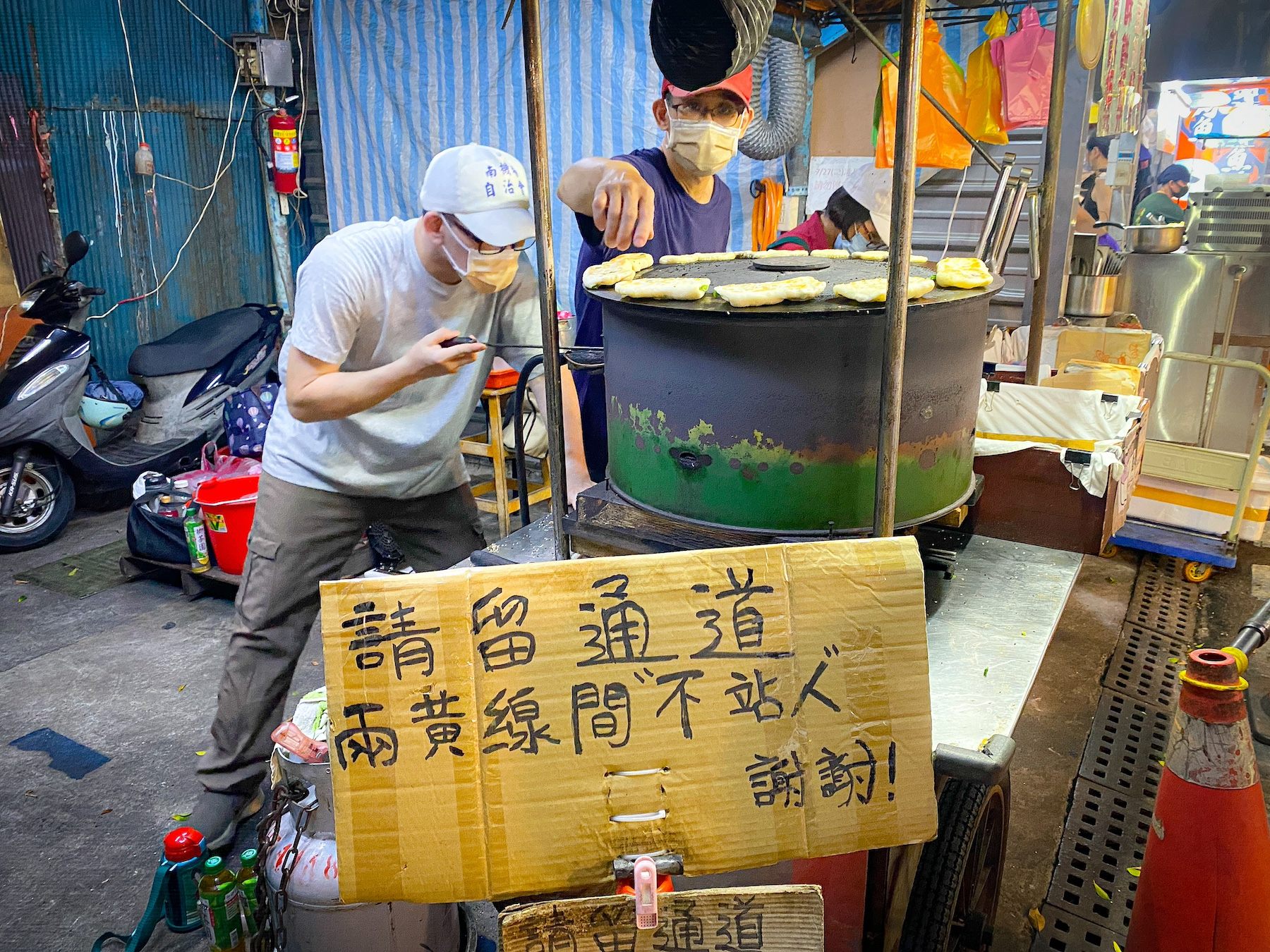 「京鼎樓」を出たあとは、地元の人が集まる「南機場夜市」へ。こじんまりとしていますが、観光用の夜市ではなく、ディープな感じのお店が立ち並びワクワクしてしまいます。夜市をいちばん奥まで進むと、行列を発見。実はここ、「ビブグルマン」を獲得した焼餅の名店があるんです。
