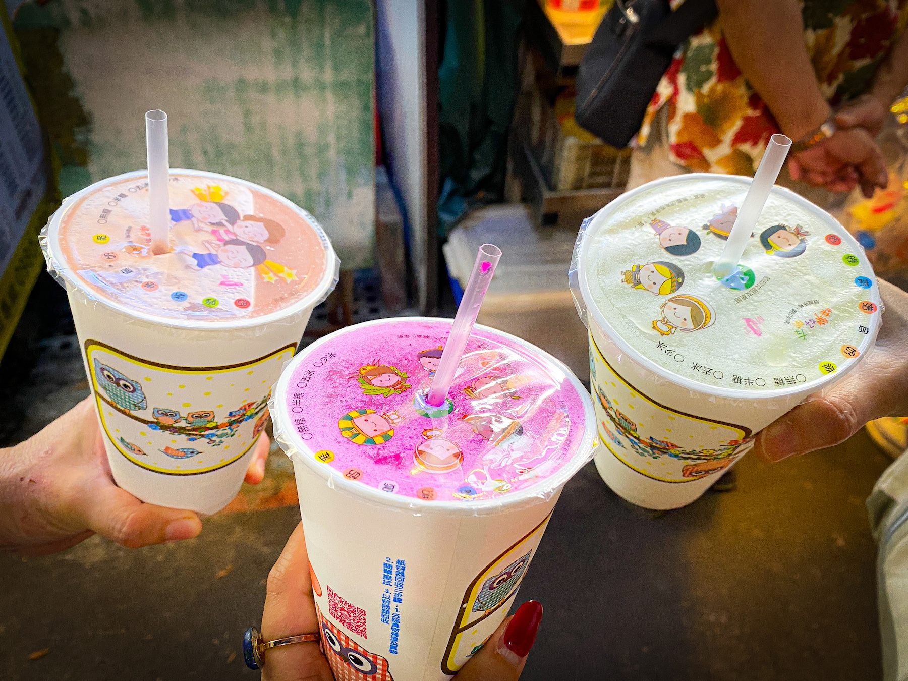 果実を絞ってくれるのは、ジューススタンドを経営している仲良し姉妹。フレンドリーに接客して和ませてくれるのも、人気の秘密です。余計なものは一切加えず、フルーツの甘みだけ。夜市で濃厚なジュースを飲むと「フルーツ天国の台湾に来た」と実感します。ひんやり冷えていて、熱った体をクールダウンしてくれる極上の瞬間。ドラゴンフルーツやゴーヤ、マンゴー、パイナップルなど、種類も豊富なので、お気に入りの1杯を探してみてください。