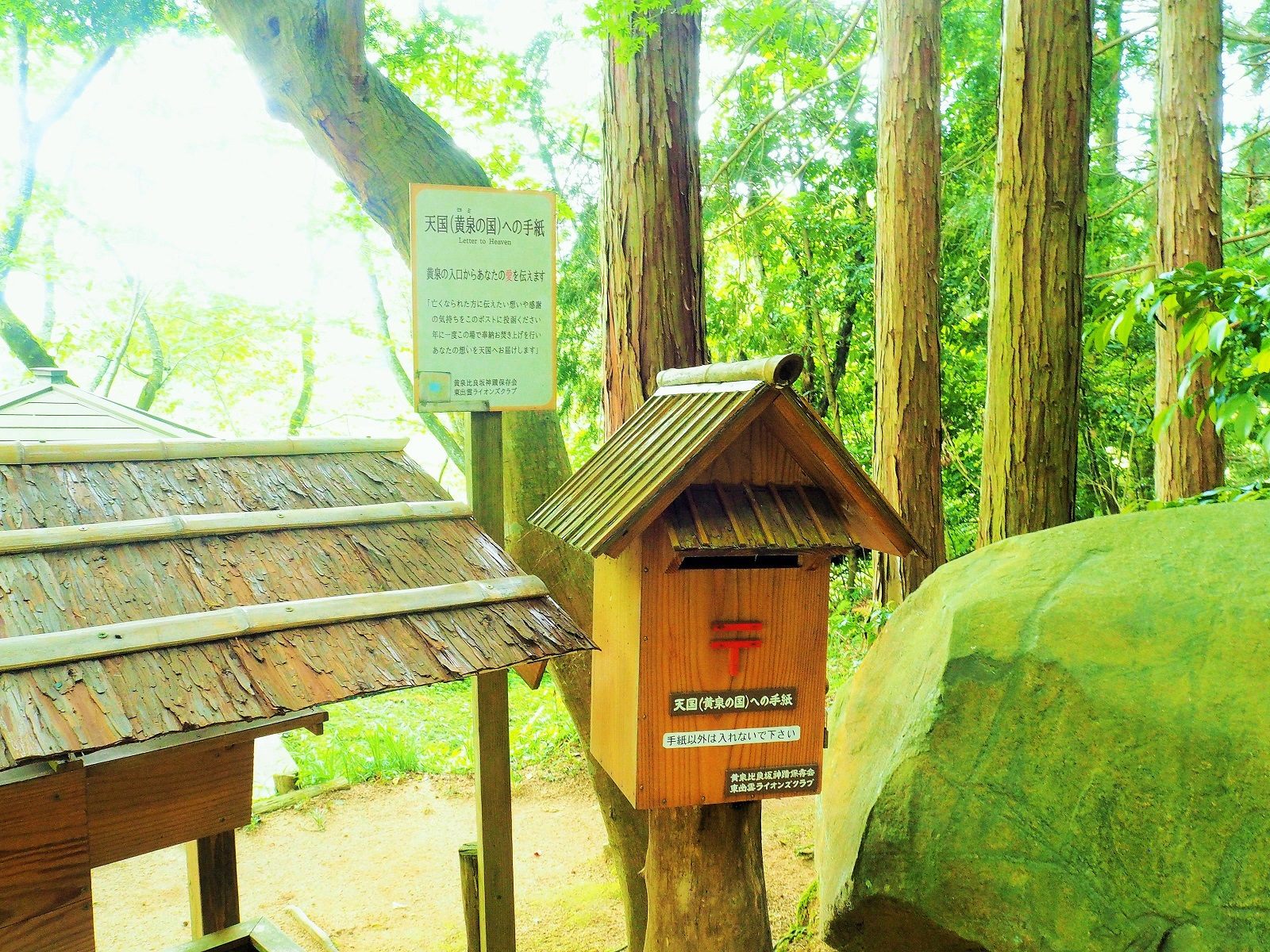 ここには天国(黄泉の国)へのポストがあるんですよ。今回はこのポストにも魅かれてここに来ました。便せんや筆記用具も用意してくださっているので、亡き両親にあてて手紙を書きました。