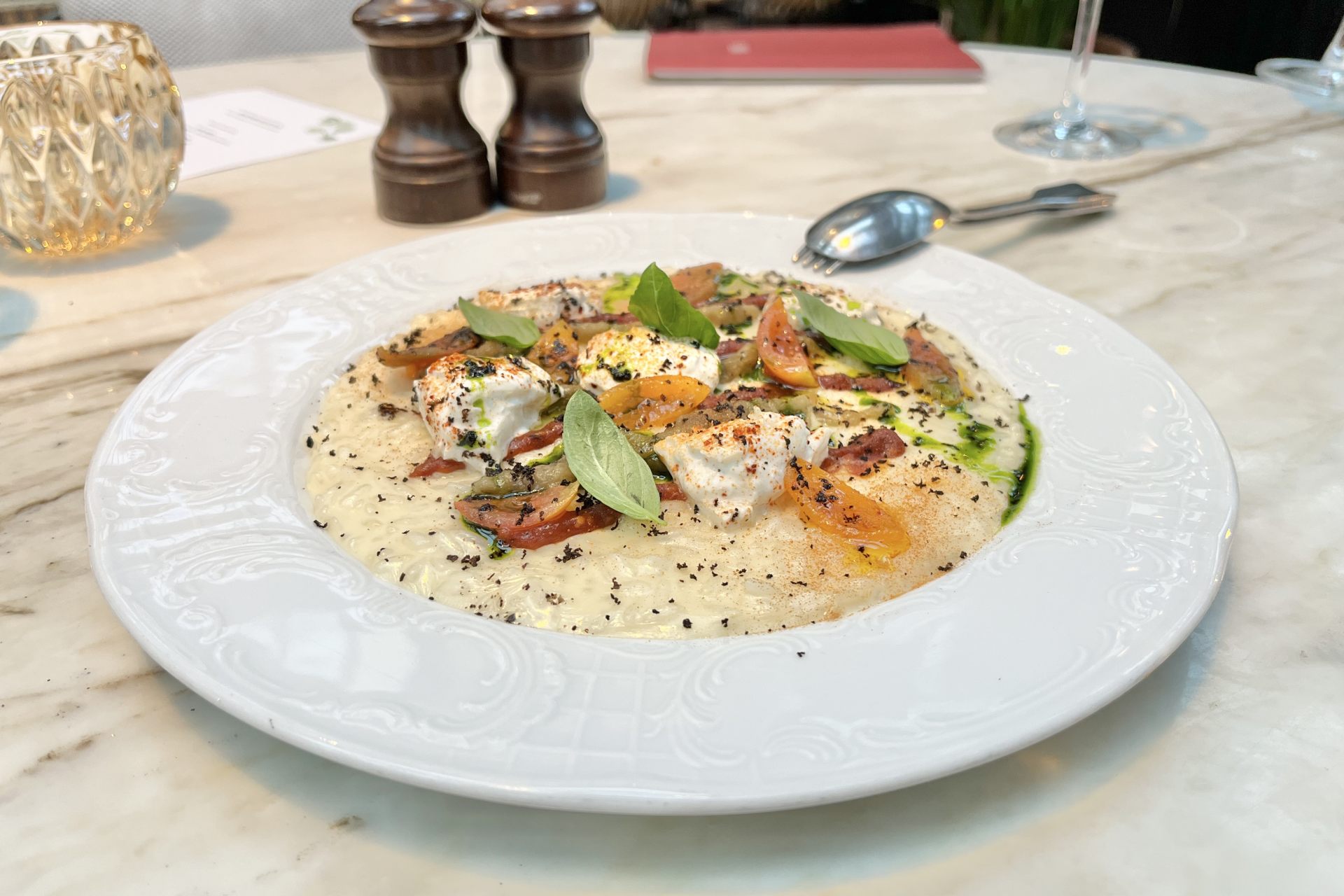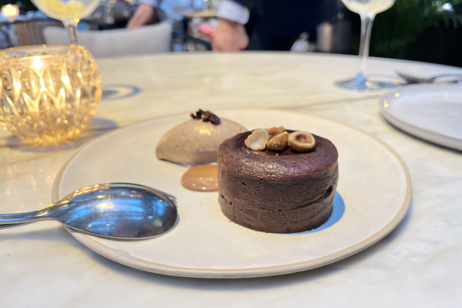 「アペリティフ ユージン(L'Apéritif d’Eugène)」は夕食前の食前酒プランなので、飲み足りない! 食べ足りない! という方には、アラカルトメニューから追加注文をおすすめします。見た目も美しい「プロヴァンス風リゾット(Risotto Provencale)」は取り分けしやすく女子会でのシェアにぴったり。ホワイトベースのリゾットにトマトジャムやフレッシュトマト、バジル、ブッラータがトッピングされています。〆のデザートには、中からチョコレートがあふれ出す甘いフォンダンショコラや、りんごのタルト、アイスクリームなど全7種のこだわりデザートのほか、まだまだ飲みたくなるチーズプレートも選べますよ。