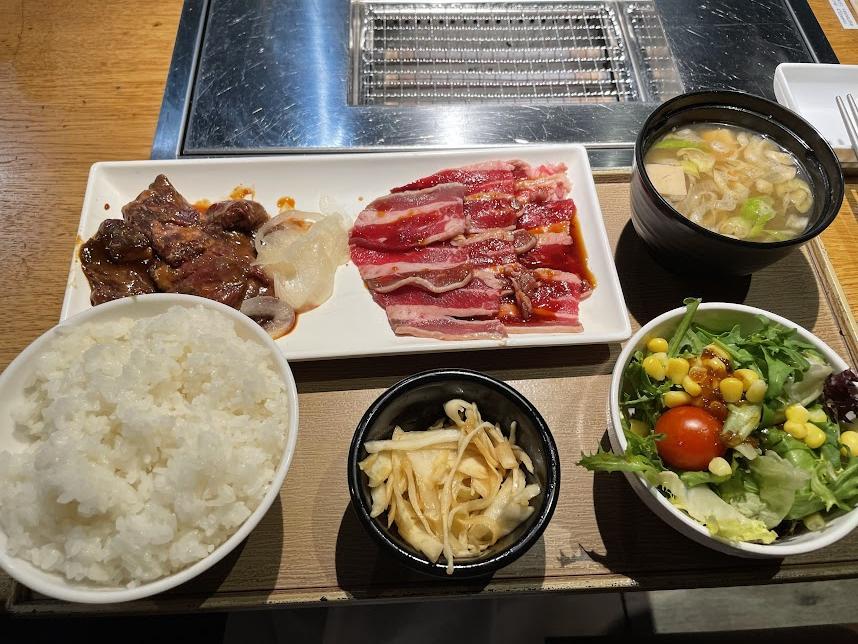 ランチセットにはお肉に加えてごはん、お味噌汁、サラダに小鉢がついている焼肉定食スタイル。
