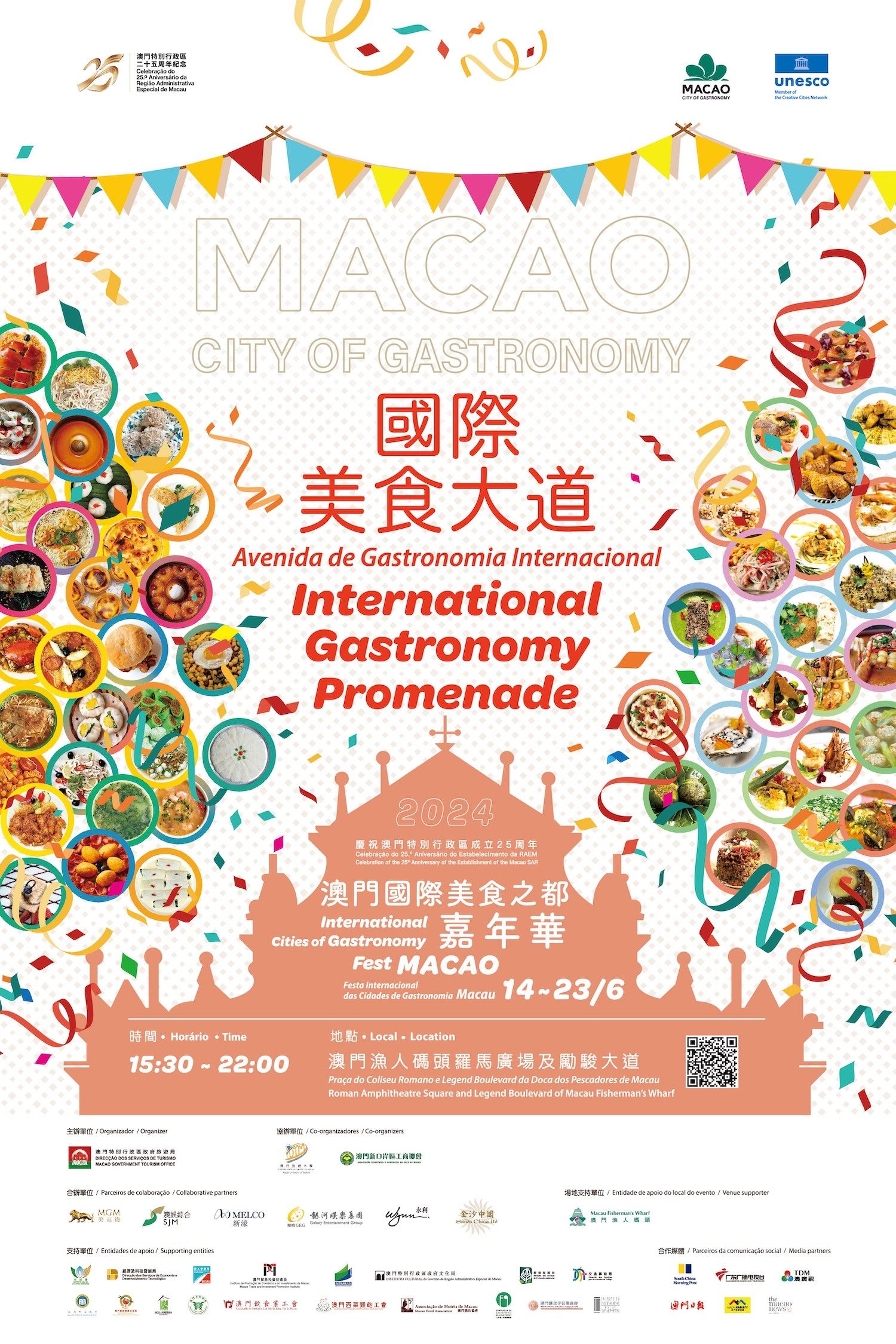 マカオ国際美食フェスティバル2024年6月14~23日開催期間中 毎日 15:30~22:00マカオ フィッシャーマンズ ワーフ ローマ広場およびレジェンド アベニューにて開催中マカオ国際美食フェスティバルはマカオ政府観光局(MGTO)が主催。このイベントはユネスコ創造都市ネットワーク(UCCN)の複数の美食都市と連携しており、多くの屋台の出店や料理のデモンストレーション、そして美食フォーラムなどが同時に開催され、格調高く特別な饗宴を演出することを目的としています。マカオと世界をつなぐ世界共通語としてのグルメを通じて、マカオ独自の食文化と美食創造都市としての魅力を体験していただけます。