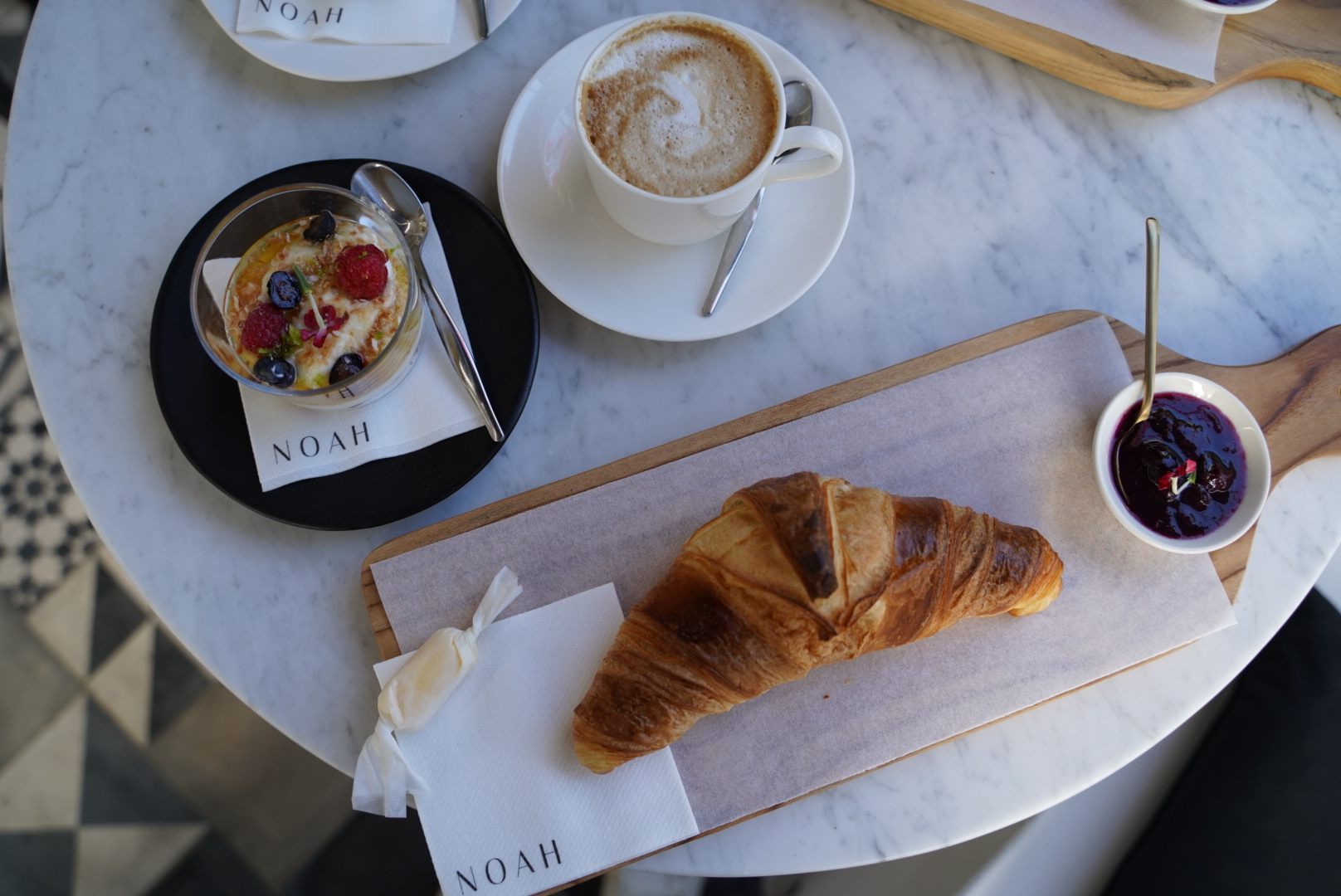 朝食もおしゃれでジャムとバター付きのクロワッサンとフルーツ入りのグロノーラが基本のセットです。