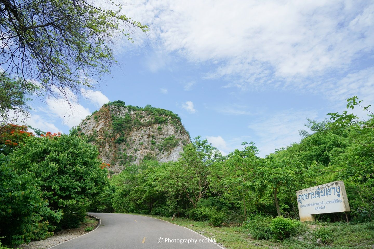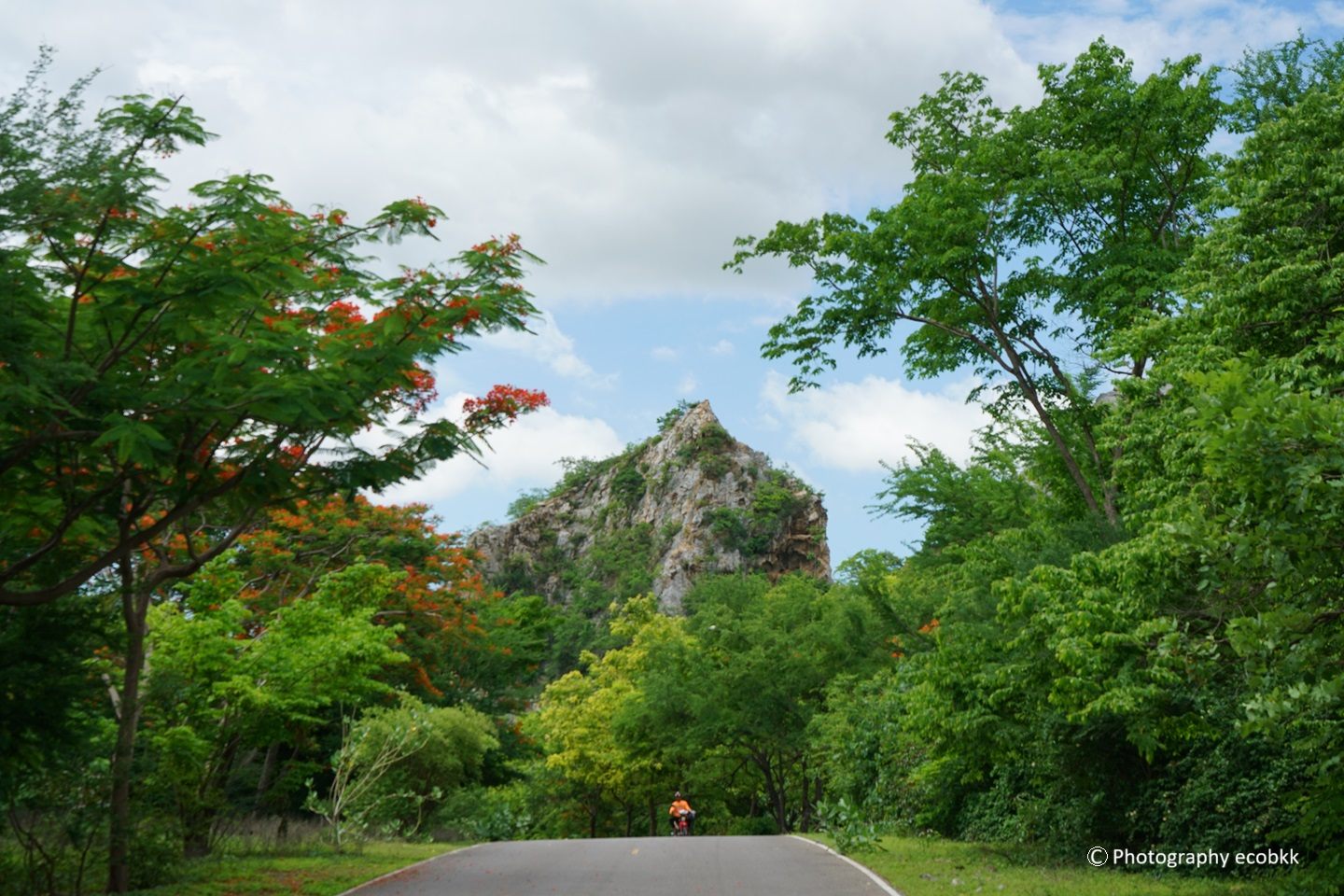 今回、筆者が向かったのは、タイ王国ラーチャブリー県内で見られる岩山の風景を楽しめるヒンカオグー公園(อุทยานหินเขางู、読み方:ウタヤーン・ヒン・カオグー)周辺。ラーチャブリー駅から公園周辺は舗装された道路が多く、快適にアクセス、散策できるところだと感じました。