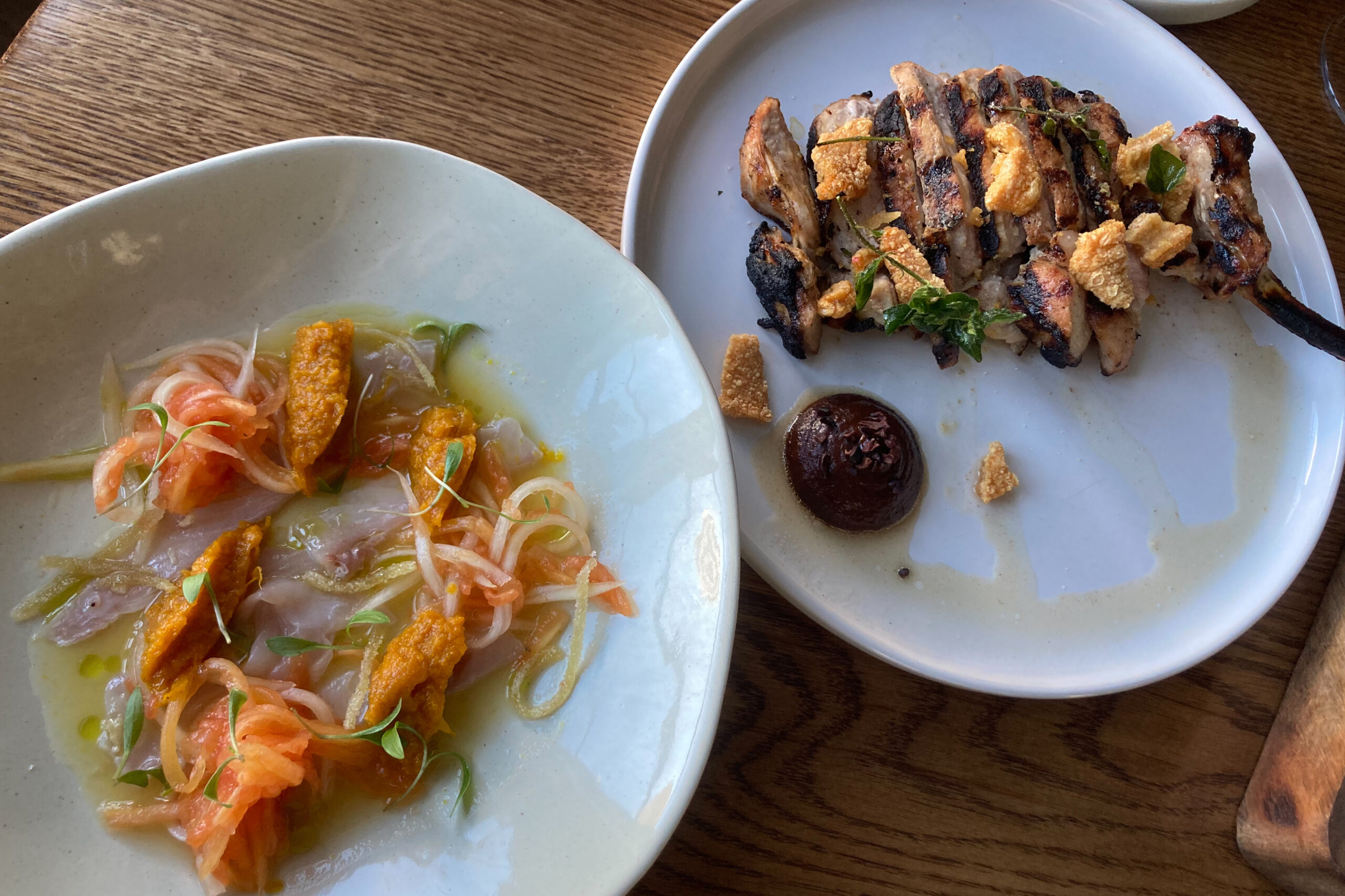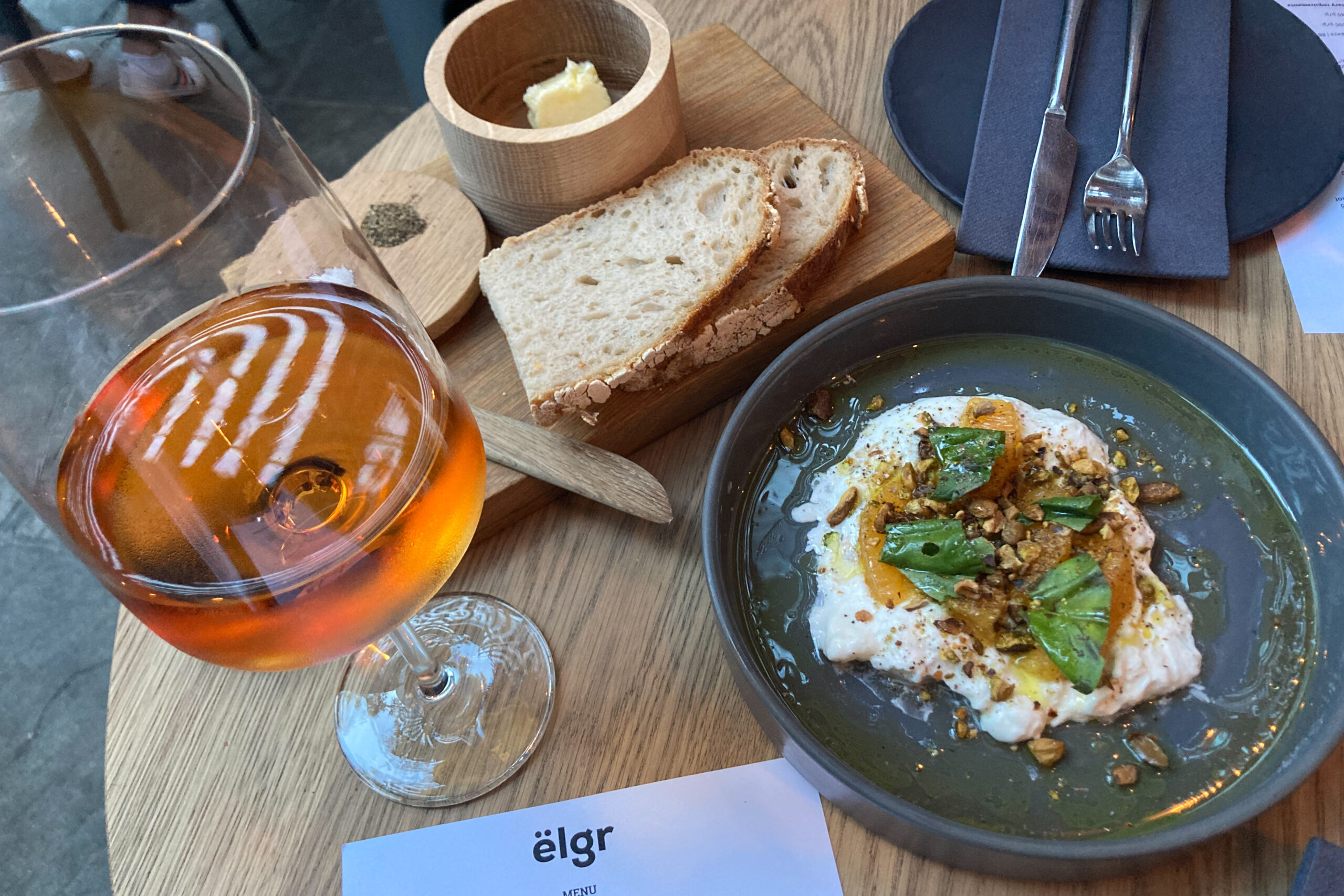 テラス席もあり、珍しいオレンジワインをいただきました。