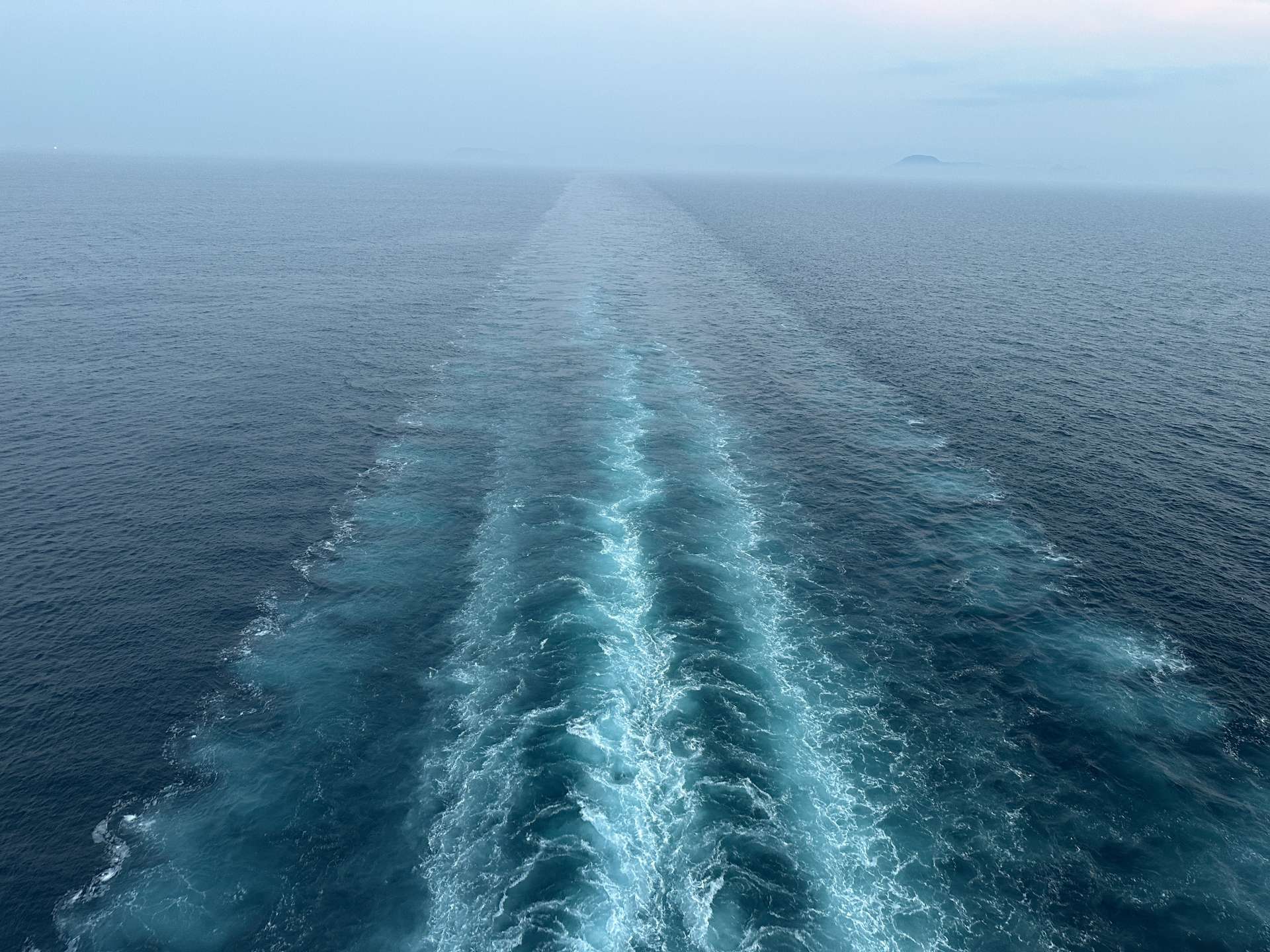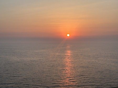 しばらくすると島も消え、海ばかり。水平線の向こうに太陽が沈みだしました。