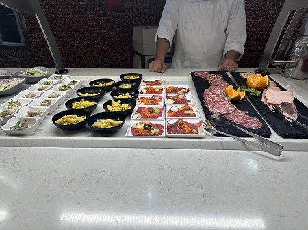 上の画像はブッフェコーナーです。陽気なイタリア人スタッフさん達でいたるところで笑顔があふれます。