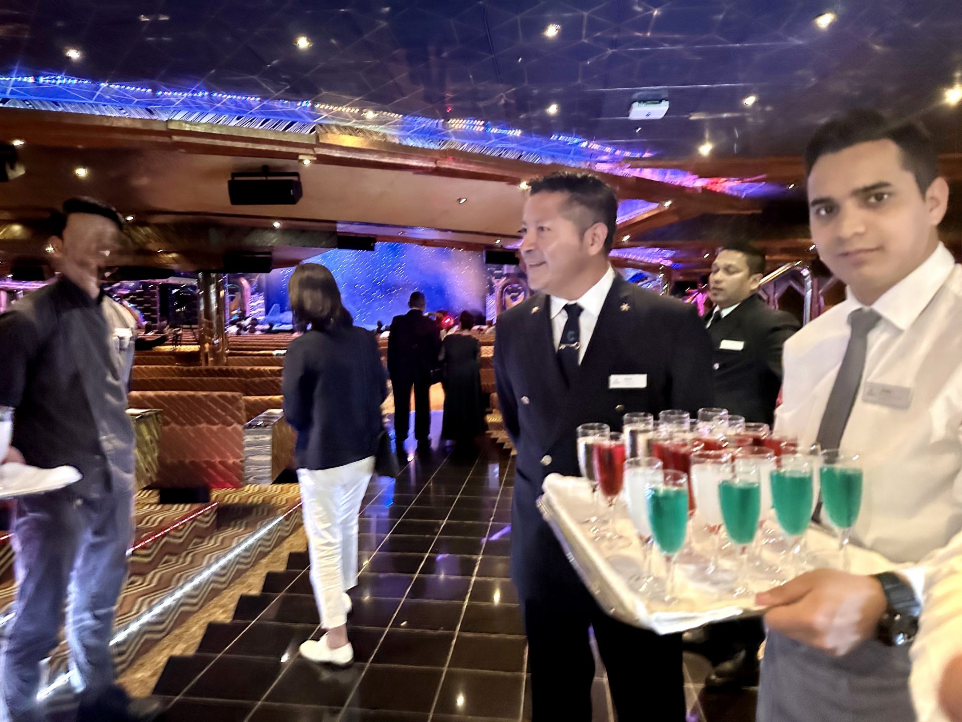 2日目の最後の夜、カクテルパーティー的な感じで最初に歌があり、その後、船長登壇、そして各オフィサー達の紹介です。