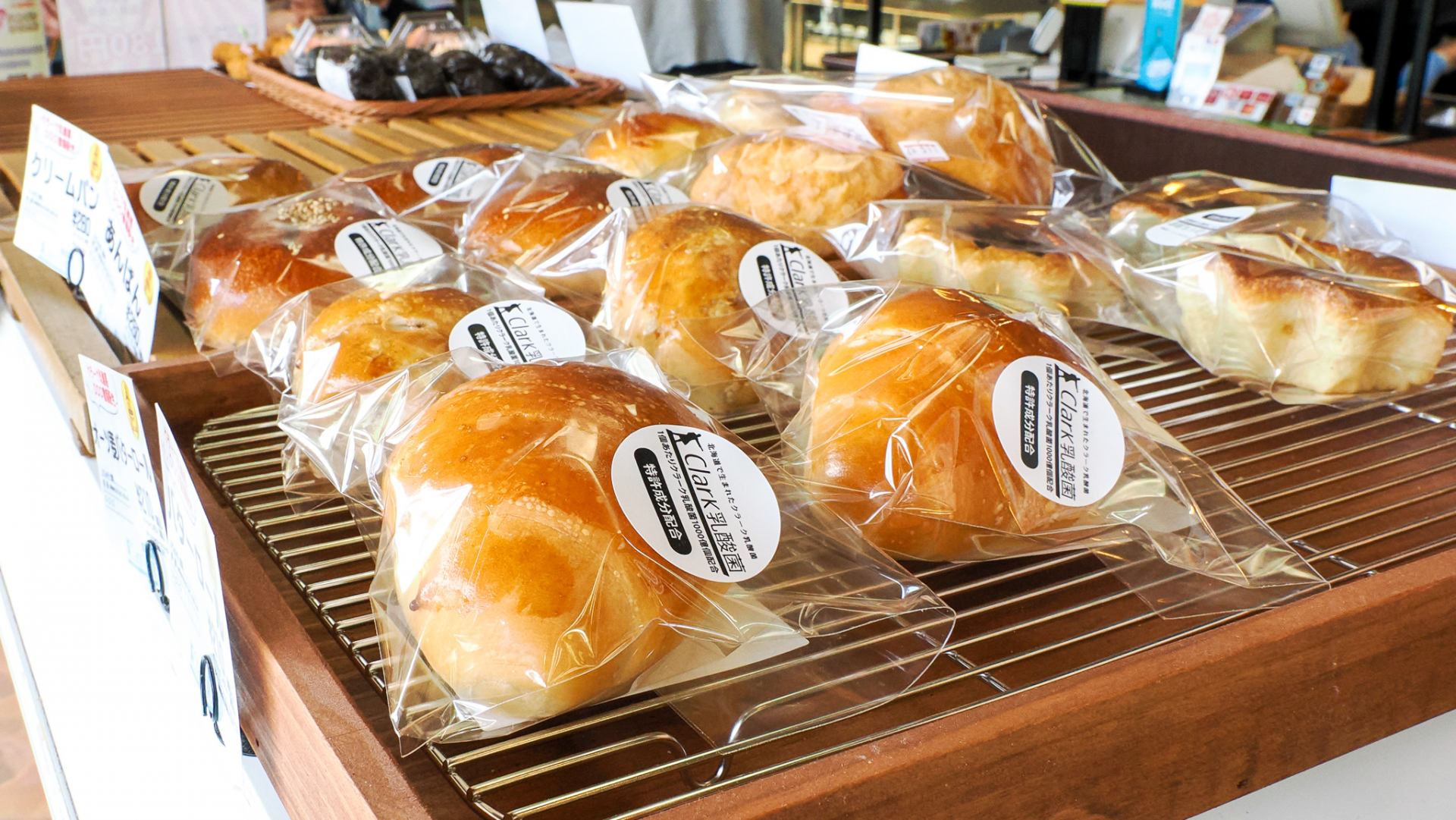 あんぱんやクリームパンなど、Clark乳酸菌入りのパンも数種類から選べます。
