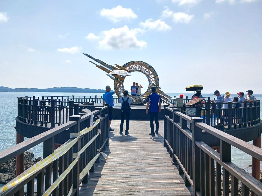 こちらでも暑い日が続いていますが、先日初めて安山市大阜島に行く機会があり、大阜島の最西端にある九峰島落照展望台に行ってきました。今年初めての海です。