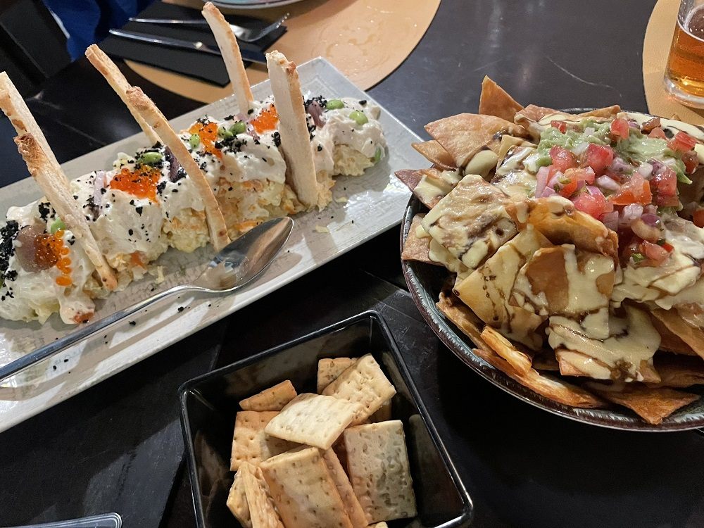 まず前菜は3品を選びます。私たちが選んだのは次の通り。ちなみに、これ以外にお通しでビーツのフムスが出てきました。
