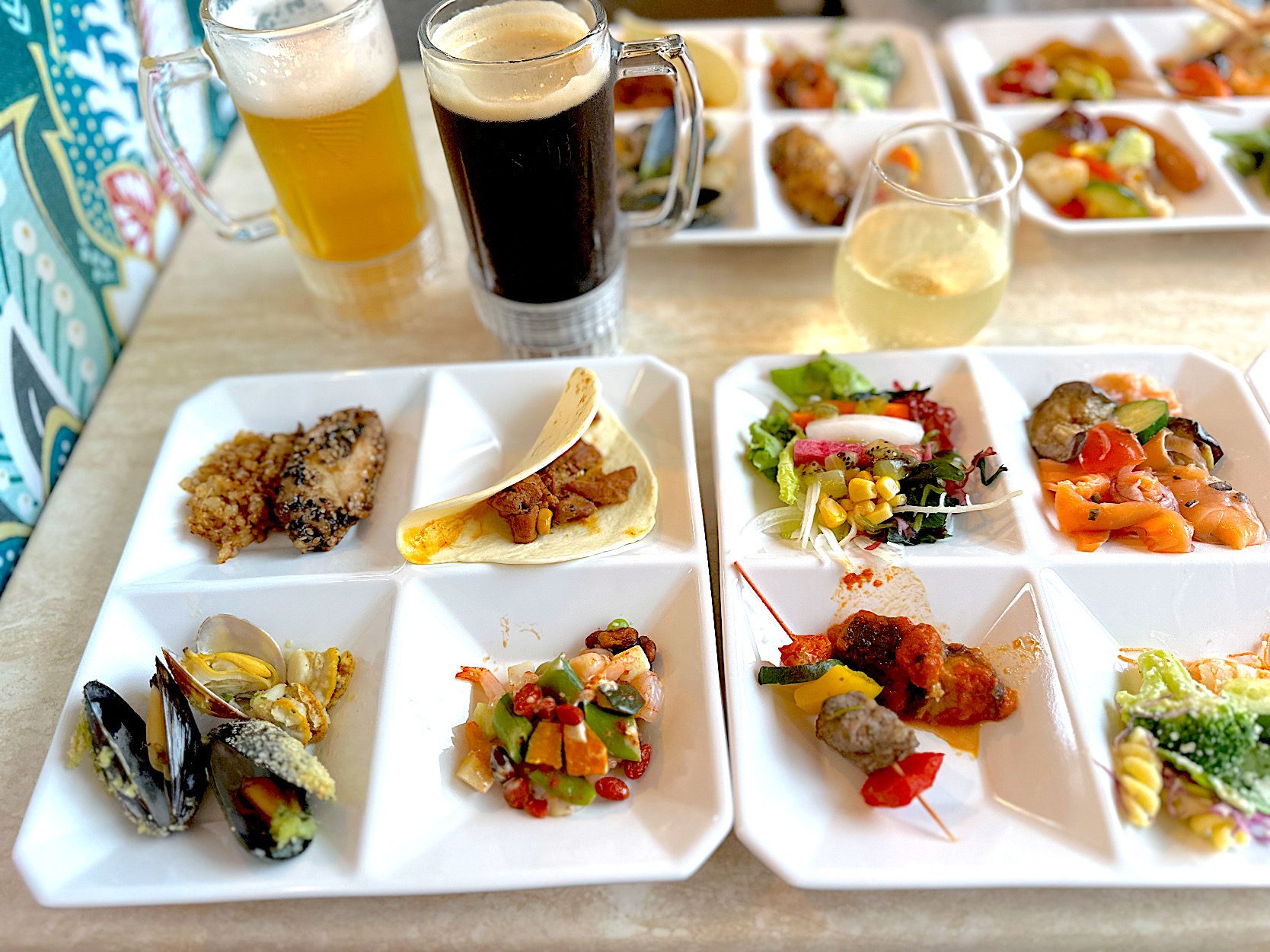 ビアガーデンドリンクはビール、ウィスキー、サワー、スピリッツ、リキュール、ワイン、ノンアルコールやローアルコール、ソフトドリンクなど、約40種類程が控えていますが、幾通りものお好みのカクテルも作れるので、組合せによりもっと種類は増え、楽しめることでしょう。