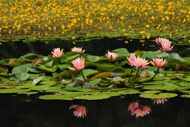 午後の遅い時間帯ということもあって、アサザの花々は全体の3割ほどでしょうか。昼頃までの来訪をお勧めします。