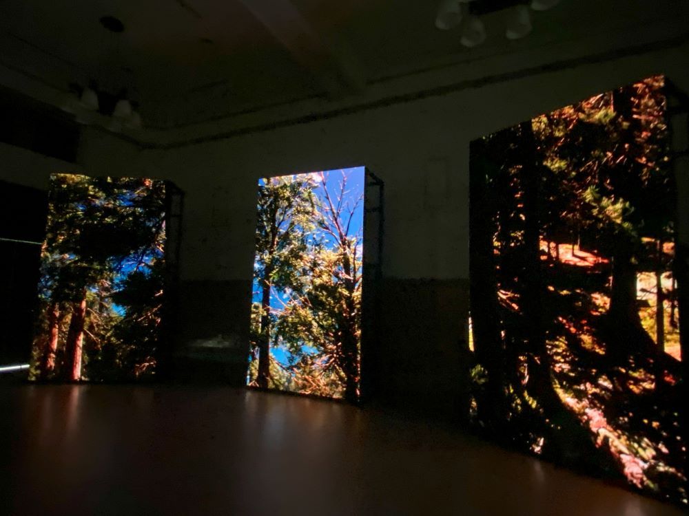 3枚のスクリーンを通じて原始林の美を昆虫の視線で鑑賞できる映像作品です。