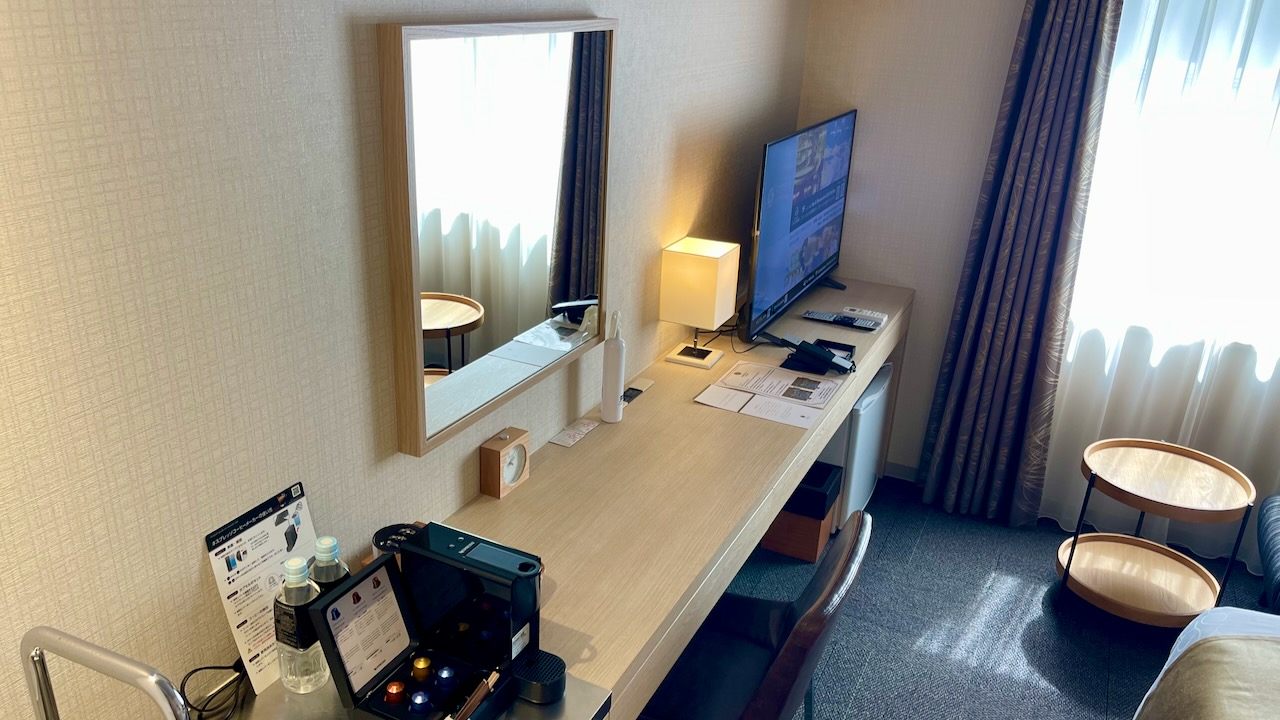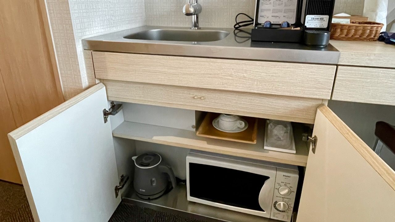 最もエコノミーなタイプでシンプルなお部屋でしたが簡単なキッチンもあり、ネスプレッソのコーヒーマシーンで一杯ずつ淹れるタイプ(香り豊かですごく美味しいコーヒー)。ボトルウォーターは冷蔵庫にも準備されていました。アメリカ国内ではめっきり少なくなった”バスタブ付き”は嬉しい限りです。アメニティも必要なものが完備され、日本らしくスリッパも当然あり!