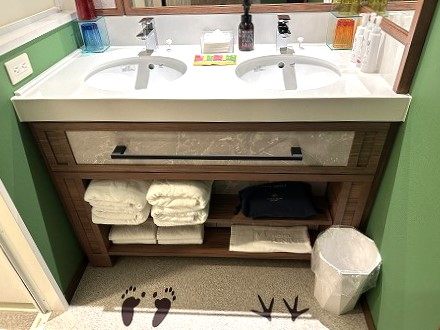 5人まで宿泊できるお部屋なので、洗面ボウルが2つあるのもうれしいですね。