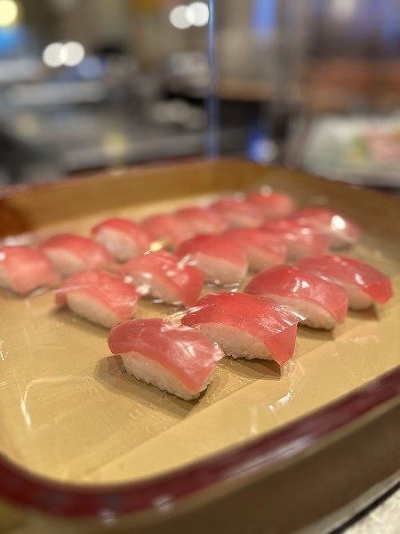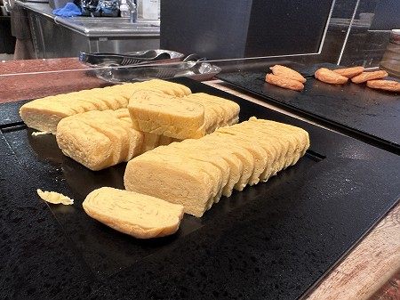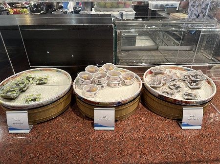 金色に輝くビュッフェカウンターには宝物に見立てた料理が並んでいます。料理もコーナーごとに分かれています。「食の都 大阪」らしいメニューや、季節感あふれる料理が並んでいます。