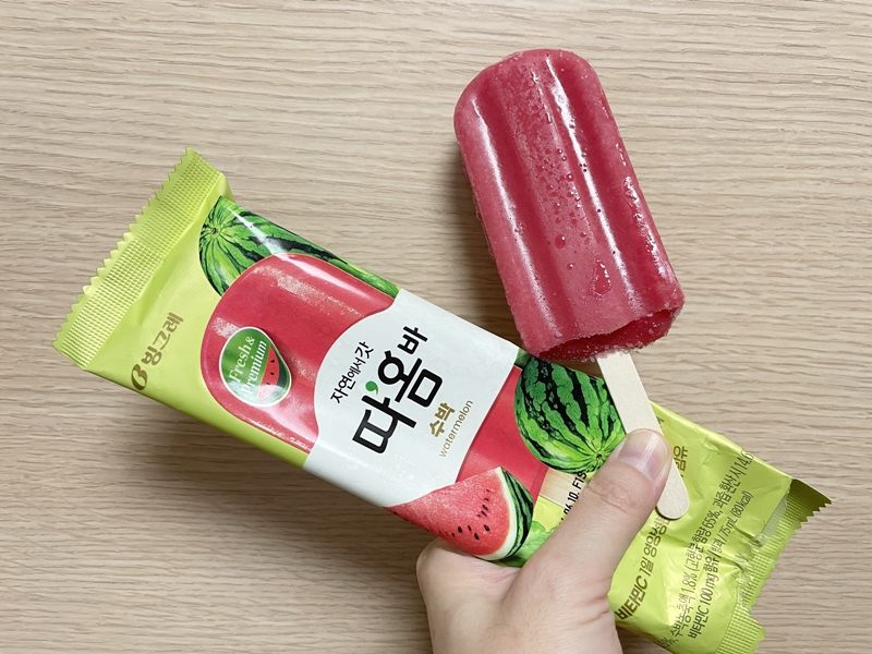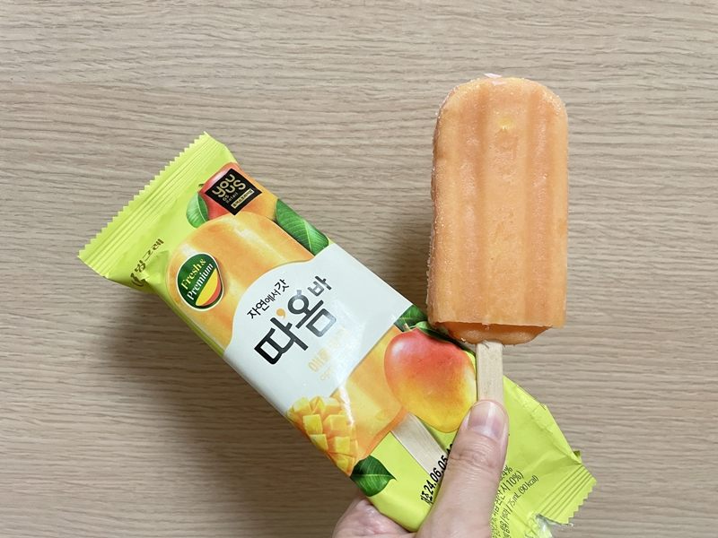 果物そのままの味と人気のフルーツ、タオム(따옴)のアイスバーバージョンです。2022年に発売され、今もさまざまな味が売られています。私はコンビニで見つけ、3種類購入しました。