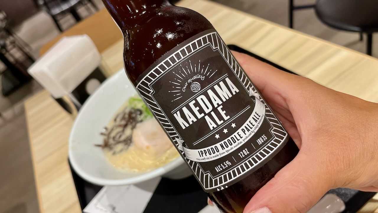 いわずと知れた豚骨ラーメン「一風堂」。他のお店がラストオーダーとなっていくなかで、まだ営業していまして、メニューをみたら「カエダマエール(900円)」なんて書いてあるではありませんか!? サンフランシスコでは何度なく行っている一風堂ですが、今回の旅行最後の一食はカエダマエールを飲みたいがために、一風堂に立ち寄りました。