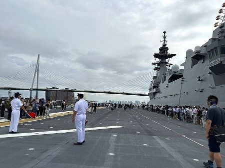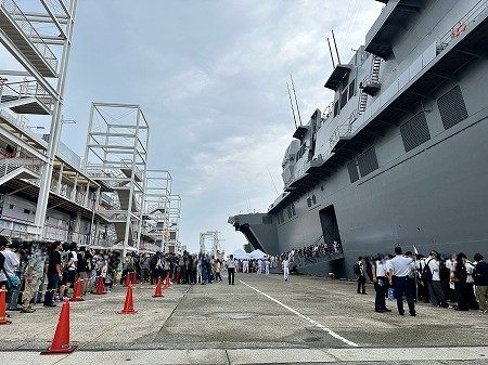 お昼前には最寄の大阪港駅まで長蛇の列ができ、12時半にはストップをかけられます。なかなか、お目にかかることのない、「護衛艦いずも」の人気の高さがうかがえます。