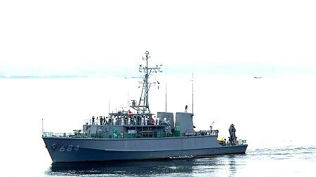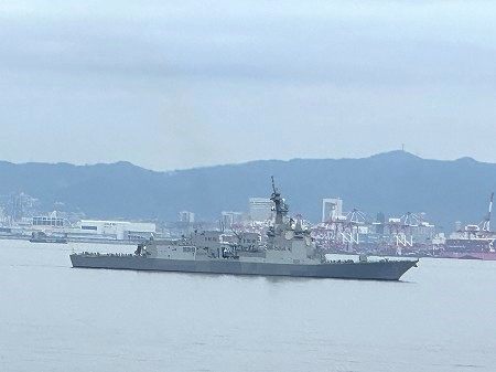海上自衛隊 阪神基地隊を出港した「護衛艦まや」とは発光信号でやり取り。