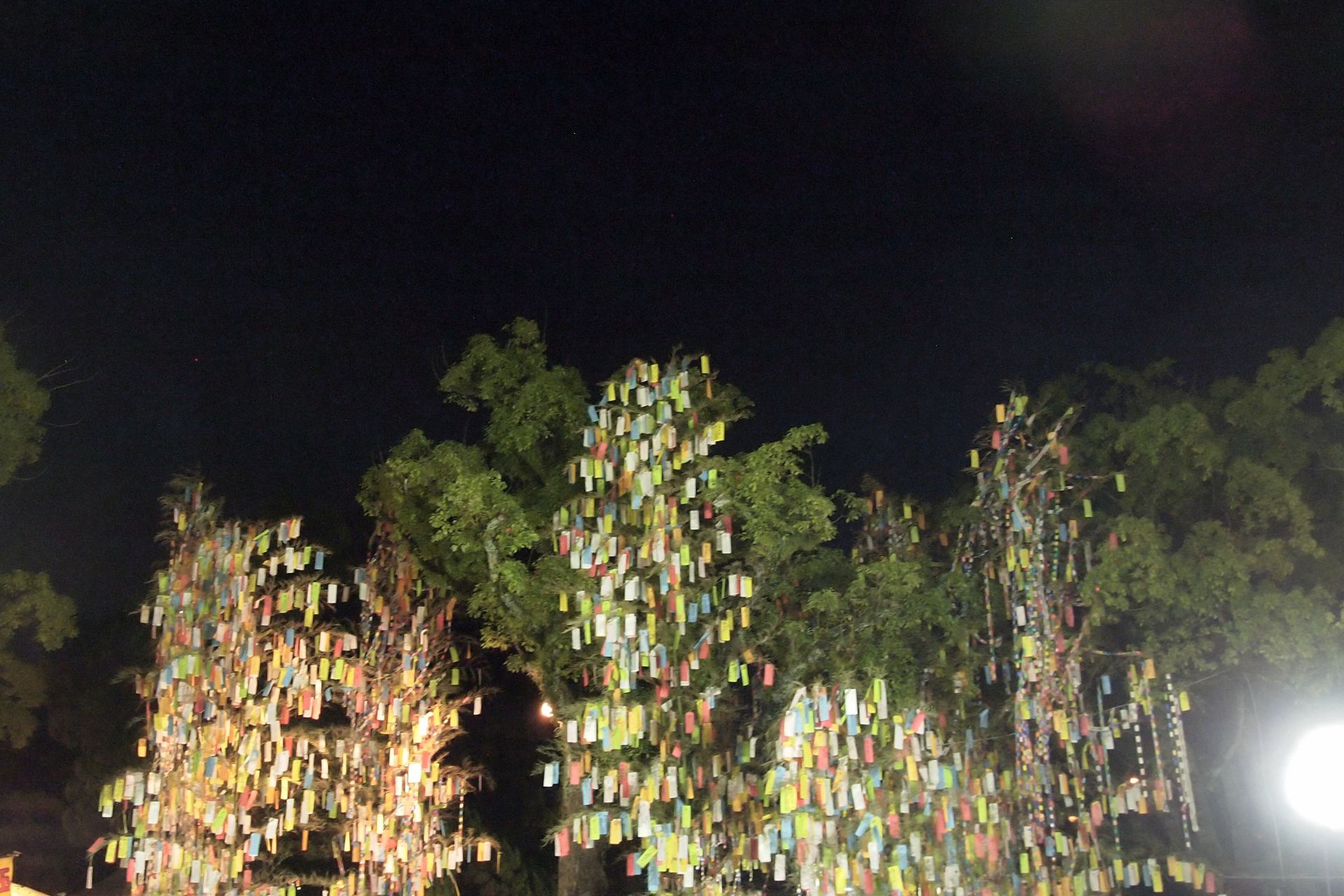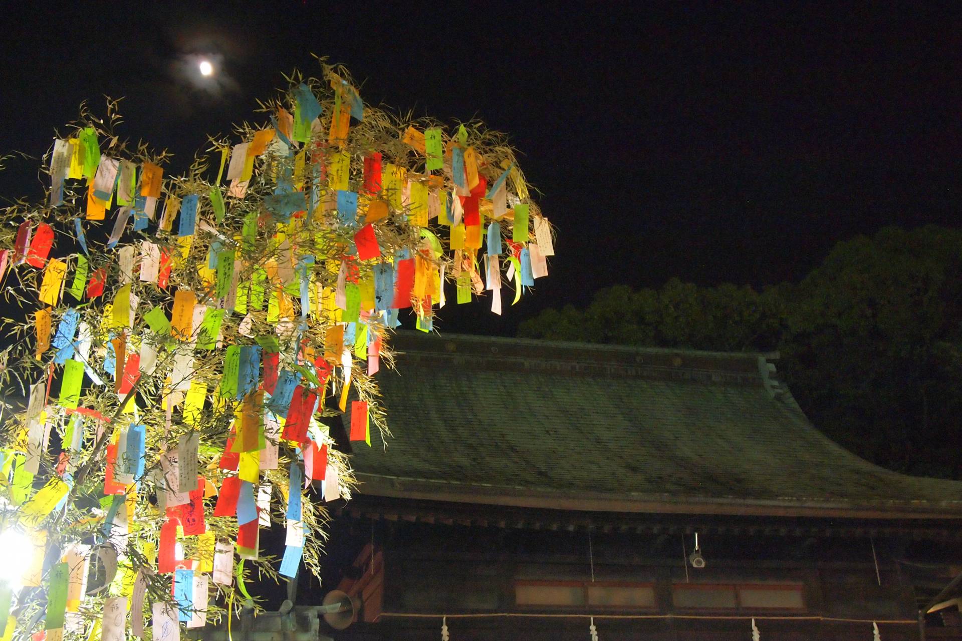 願いごとの書かれた約15本の笹が境内を埋め尽くしています。夜風に吹かれここに書かれた願いごとは全て叶えてもらえそうな神秘的な夜です。