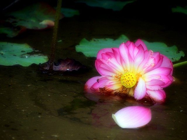 咲いていることを誰にも気づかれずに沈んでいく蓮。