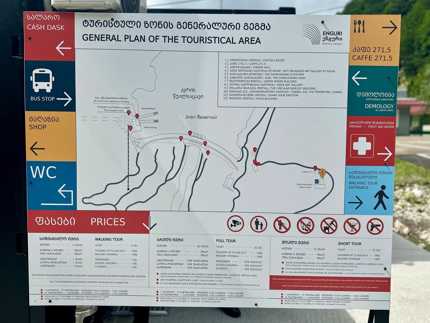 さて前述の通り、①のルートを使って、Zugdidiを通りメスティアへ向かう道中に、Enguri dam(エングリ ダム)という看板が見えてきます。前方に走る何台もの車はその看板の方に左折して行き、筆者も向かいました。
