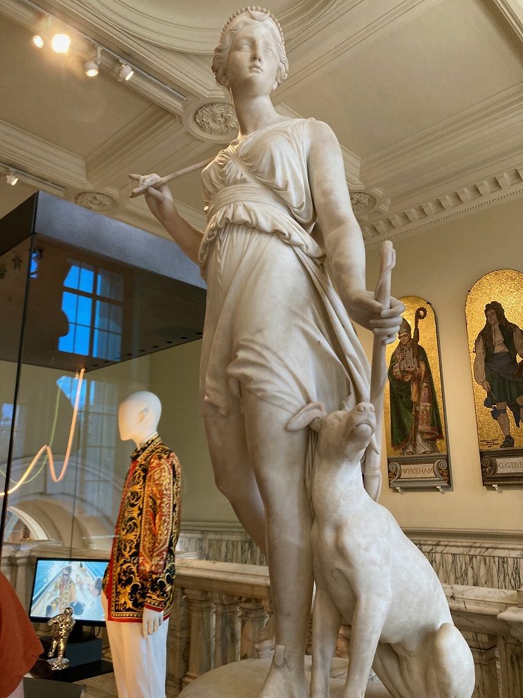 またヒットシングル「ザ・マン」のビデオで男性に扮したテイラーが着用した服や小物は、月と狩猟の女神アルテミス像のとなりに展示。キュレーターのウィットに感心させられます。