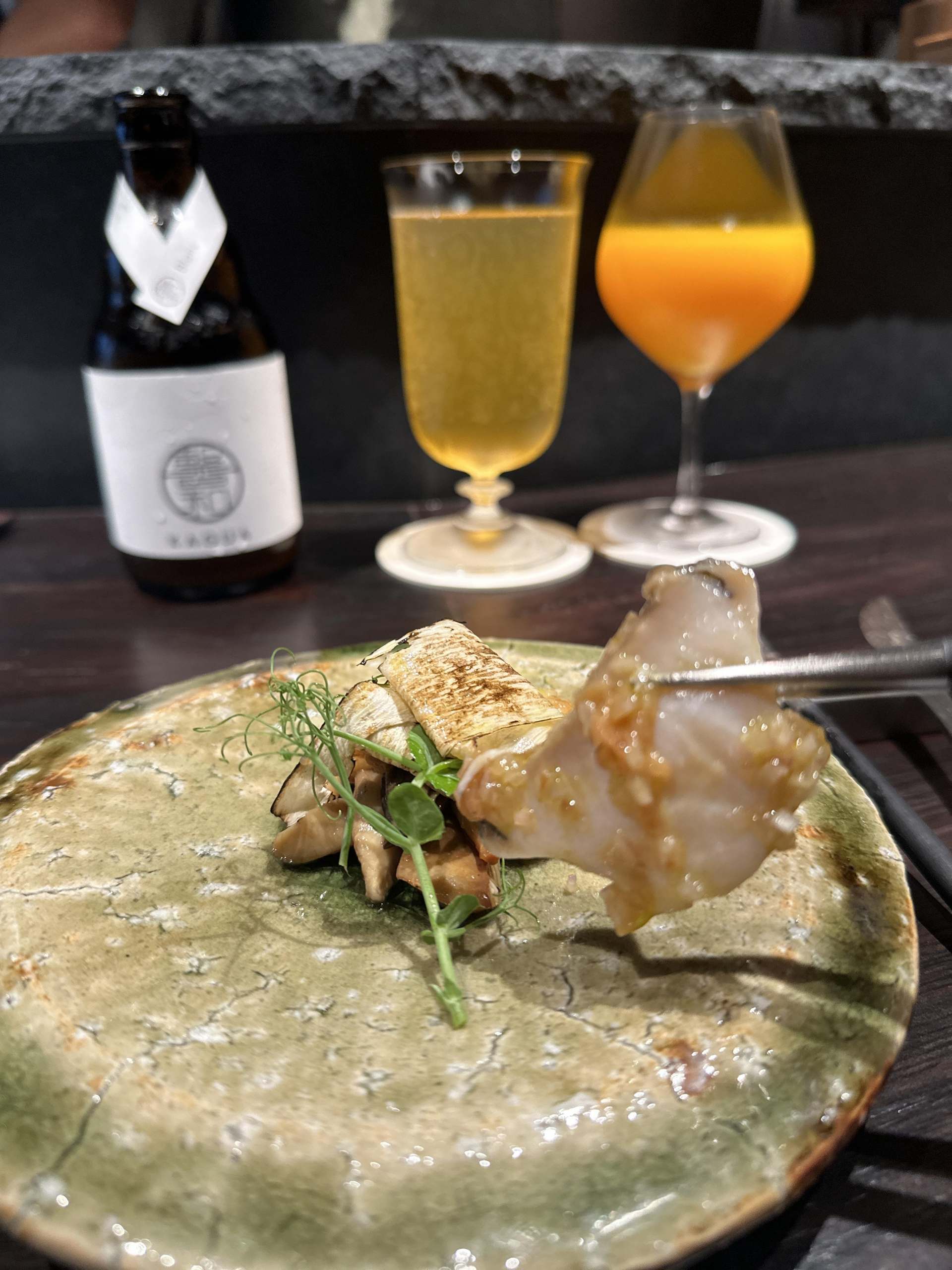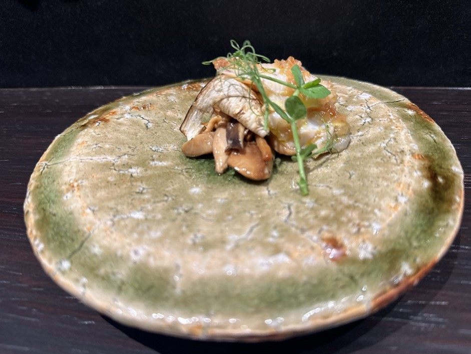 産地直送の鮑とあわび茸などの数種のキノコを合わせ梅干しドレッシングで和え、貝の甘味と旨味、そしてコリコリの食感にキノコの香りと、海と山の自然の幸が美味しい!ハーモニーを感じる逸品です。