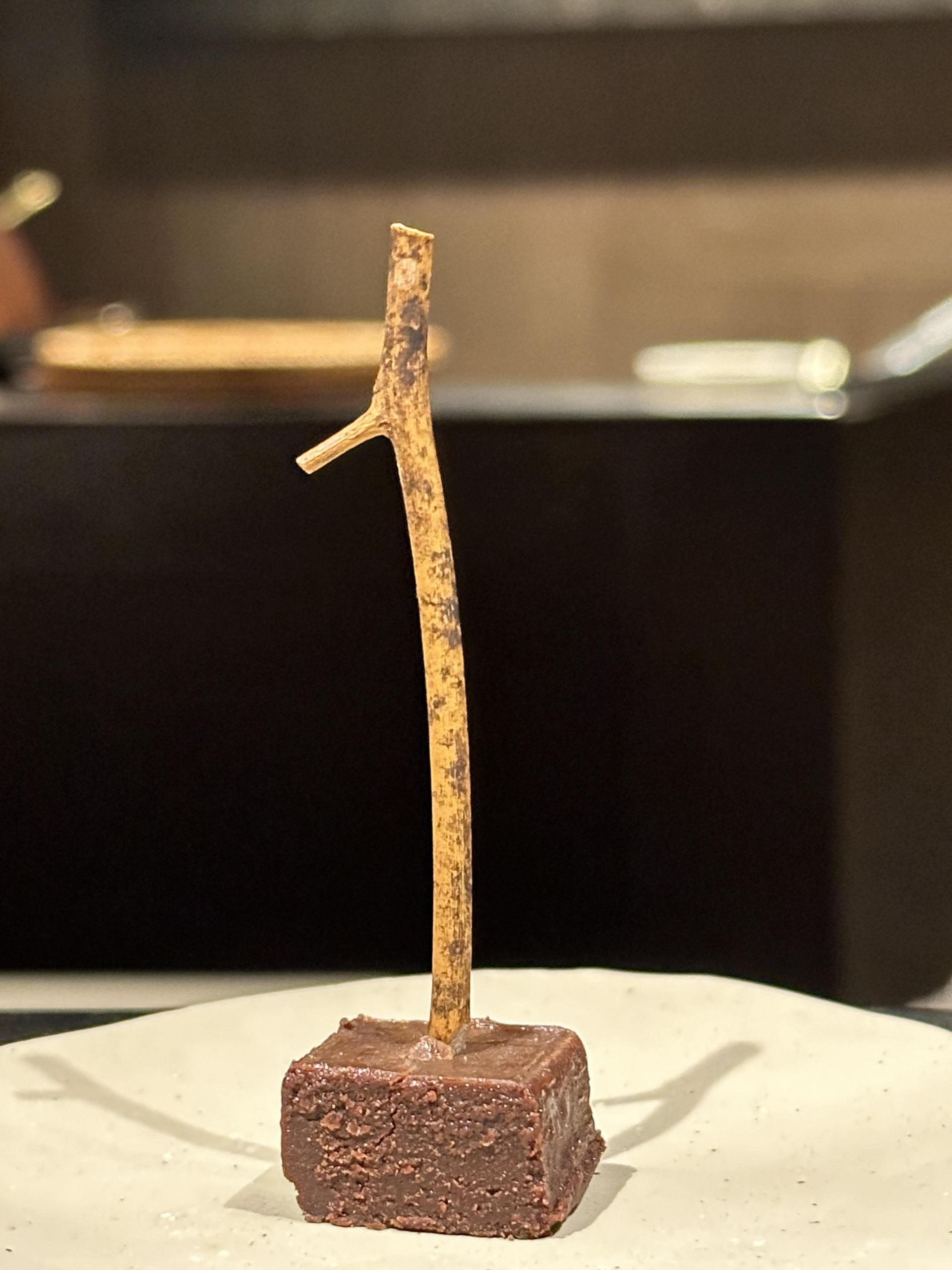 樽香を効かせた熟成ラム酒と自家焙煎のエスプレッソの香り高き生チョコレート、モカとカカオの優しい苦みとラム酒の甘味で、口の中と心までほっこり、最後を締めくくるにふさわしいチョコレートです。インパクトある枝がオシャレ。