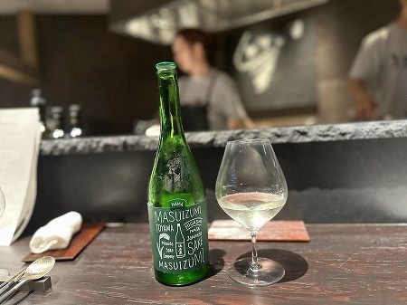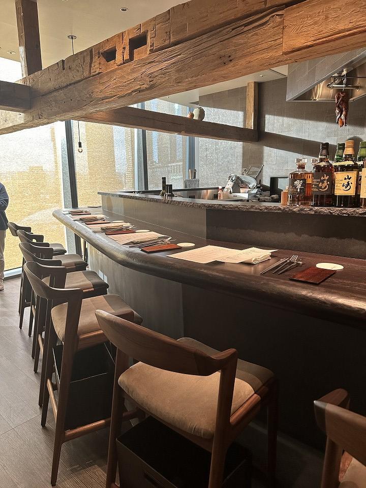カウンター席は10席のみのプレミアムシート、高級感が漂い、照度を落とし、落ち着いた雰囲気の隠れ家のようです。通路側からは全く店内の様子が見えないようになっています。外の喧騒を離れ、カウンター越しにシェフの匠の技を見ながら、五感で食のライブパフォーマンスが楽しめます。