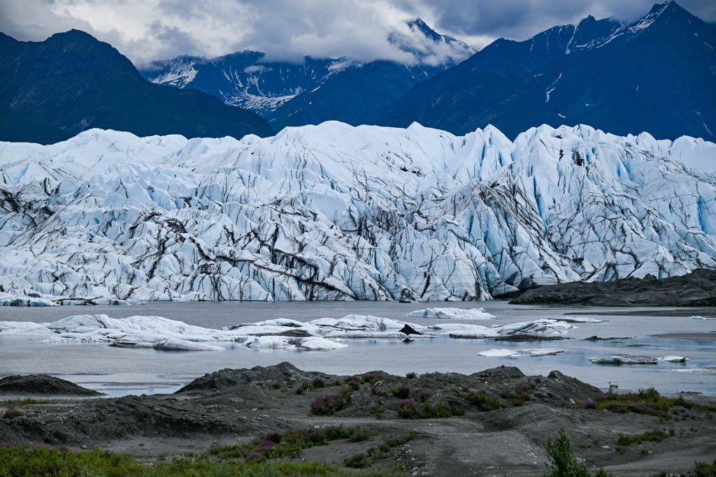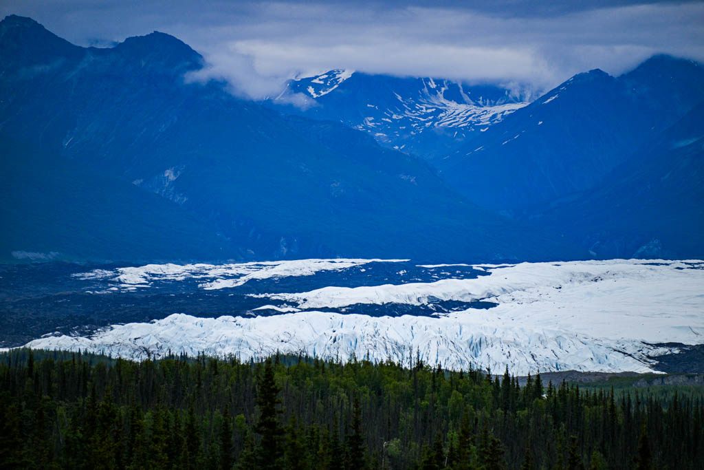 Matanuska氷河が流れ出ている南の山脈はChugach山脈から流れ出ており、反対側に翌日訪問したPrince Willams soundに流れ落ちる氷河たちがあります。