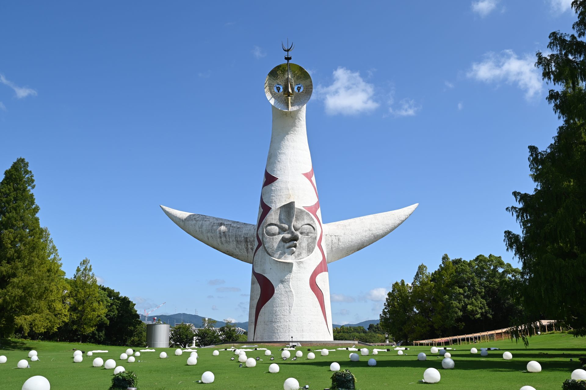 イルミナイト万博ということで太陽の塔がライトアップされるので、塔の前には無数のライトが日没を待っていました。