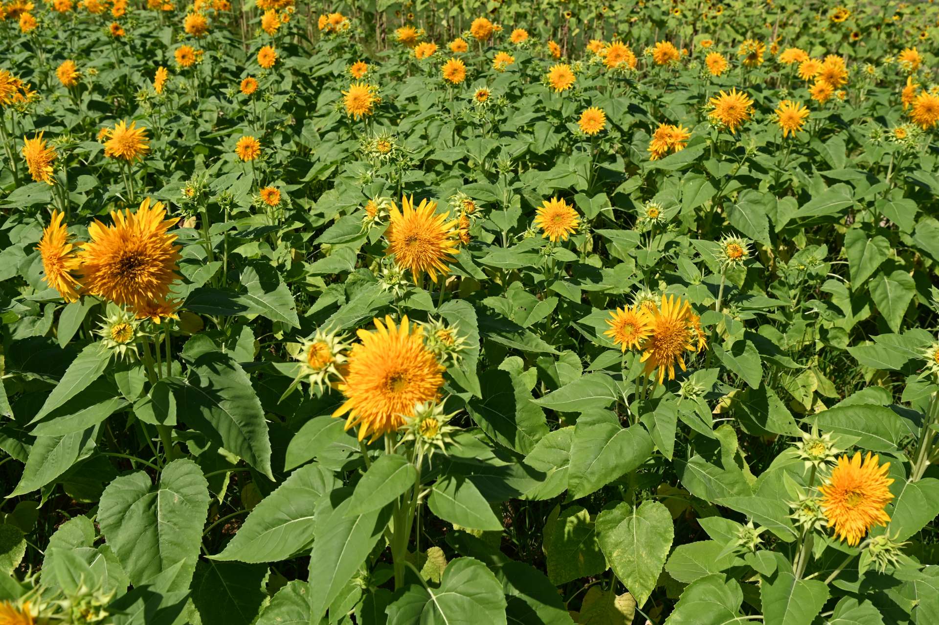 自然文化園のチューリップの花園に植えられているひまわりはほぼ咲き終わってしまいましたが、サンキングという品種は今が見頃でした。