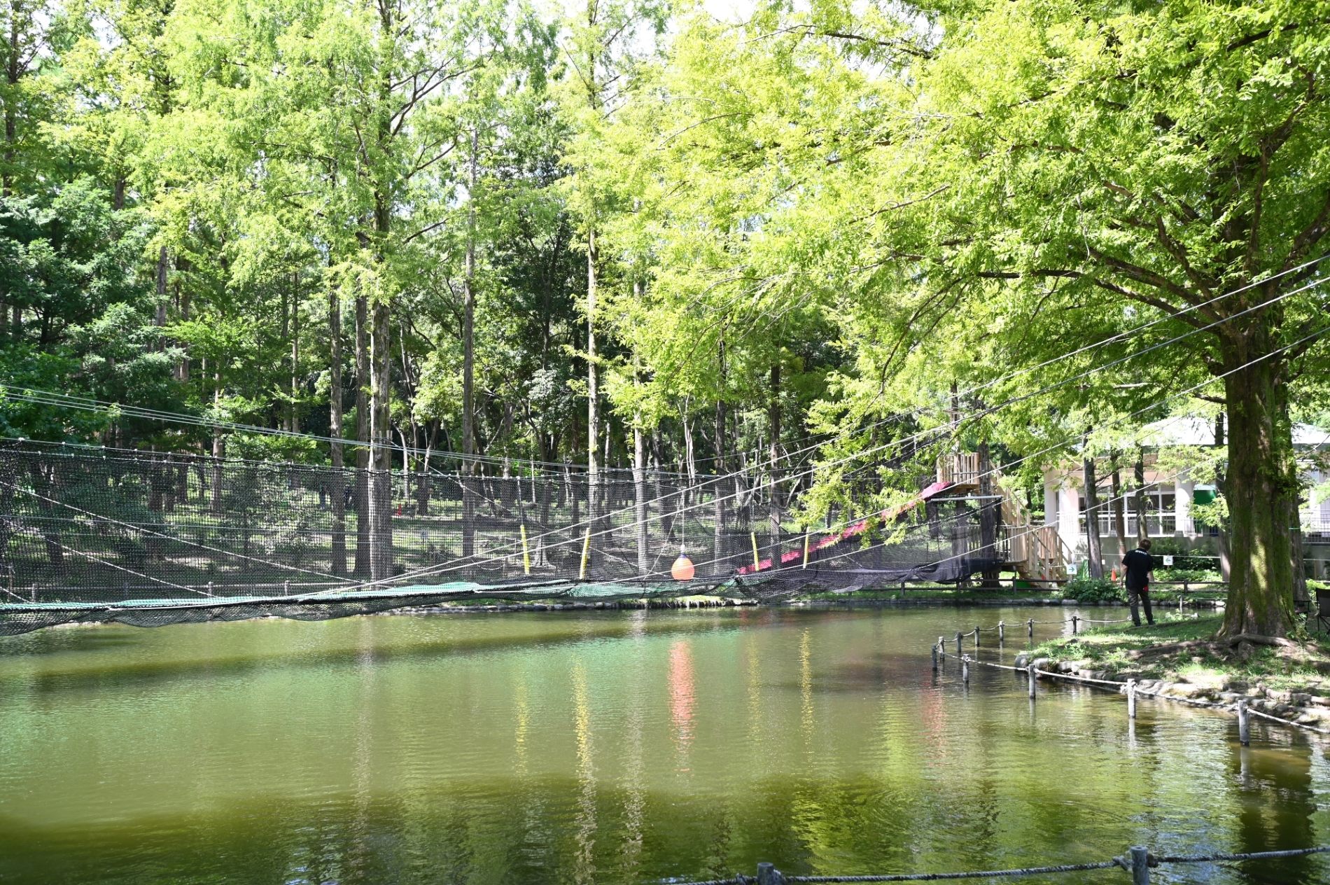 設置されている場所はもみの池周辺で大きな木の下で日陰になっていますので、真夏でも比較的涼しく体験できますよ。