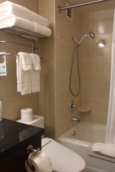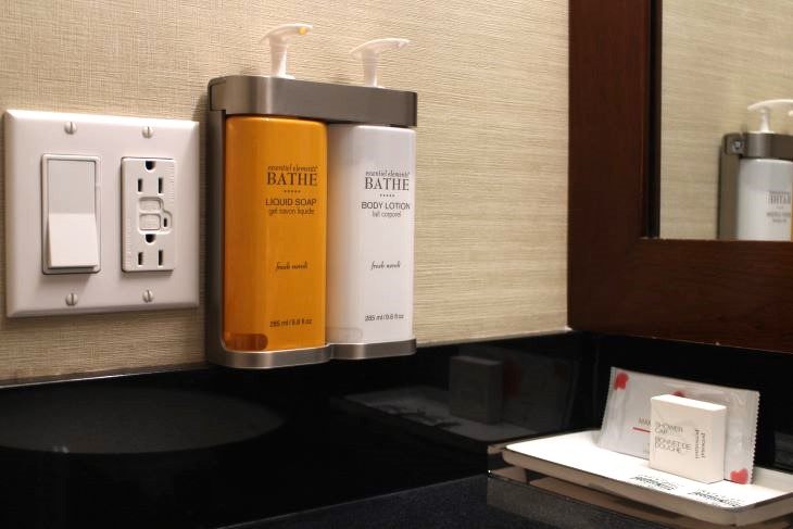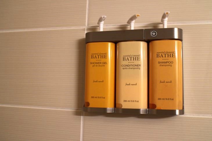 バスルームには、シャンプー、コンディショナー、シャワージェル、リキッドソープ、ボディローション完備です。日本とは違い、歯ブラシはありませんのでご注意ください。