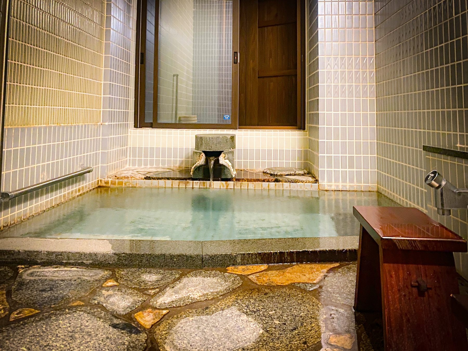 泉質は、ナトリウム・カルシウム-硫酸塩泉。硫酸塩泉は美人の湯のひとつとして知られています。実際に浸かってみると、さらりとした柔らかな湯が肌によくなじみ、湯上りには体の芯までポカポカに。肌がしっとりすべすべになって、触れるととても気持ちがいいんです。