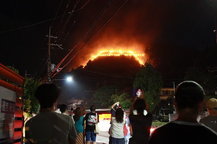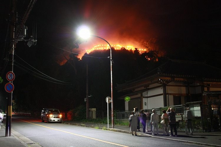 五山の送り火は、お盆の始まりに帰ってきた先祖の精霊を、お盆の終わりに冥界へ送る仏教行事です。