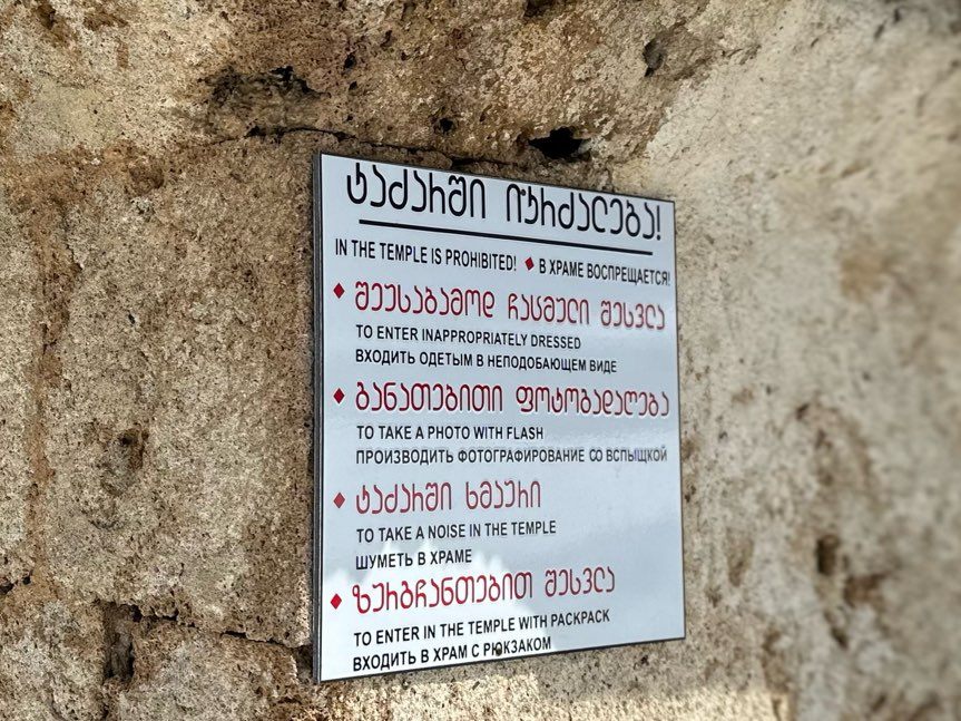 ジョージア正教会の教会の入り口の多くには、観光客向けに礼拝における決まりが掲載されています。
