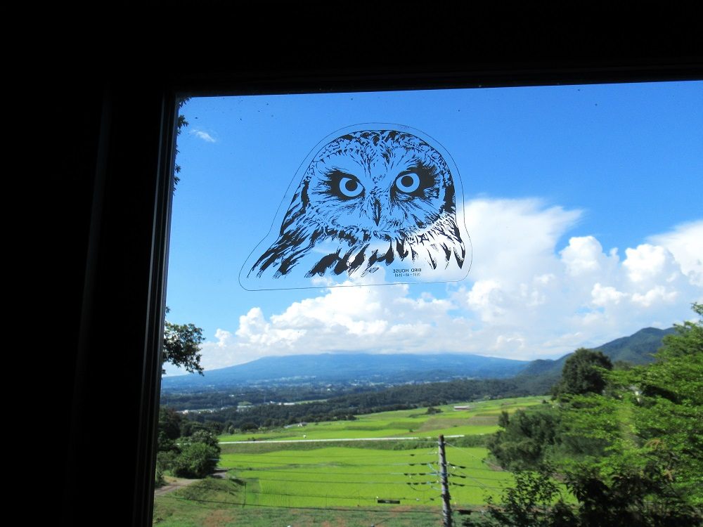 ちなみに、こちらはバードセイバー。野鳥が窓にぶつかるのを防ぐための鳥避けです。越してきた頃、何度か野鳥が窓にぶつかりかわいそうなことをしましたが、これを貼ってから事故が減ったように思います。
