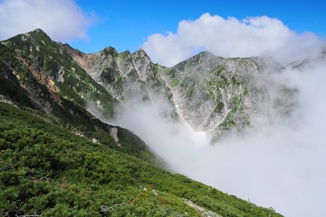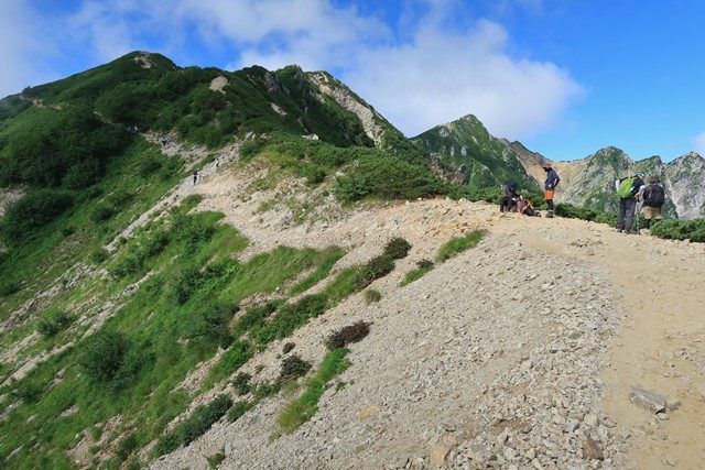 丸山ケルン付近で唐松岳と不帰ノ嶮周辺が確認できるようになります。