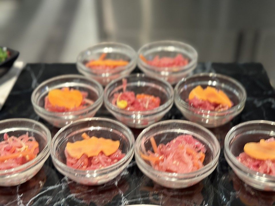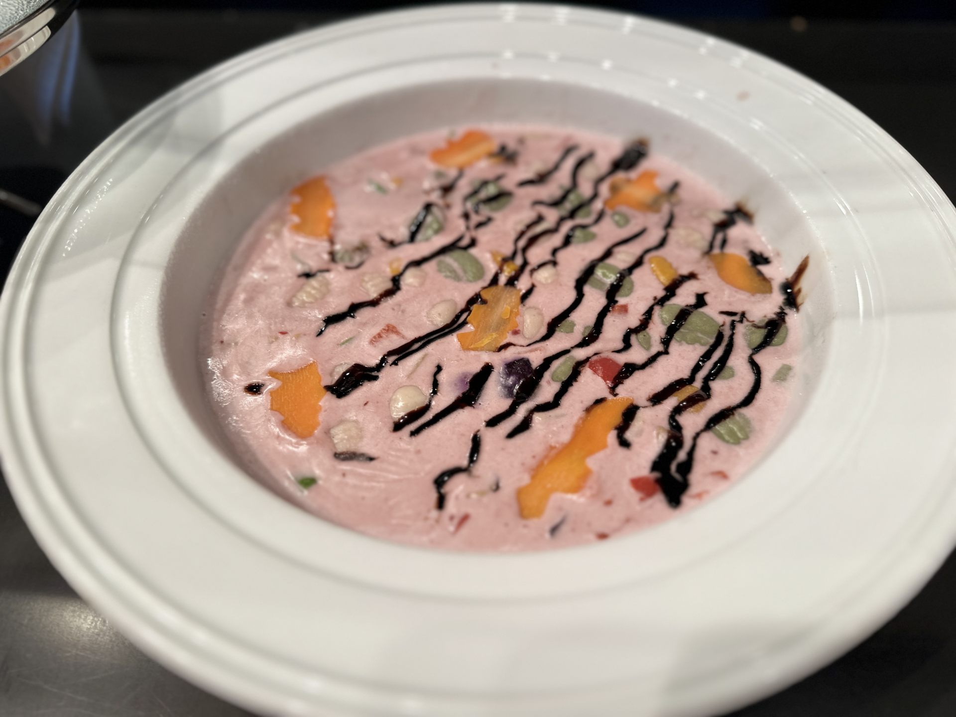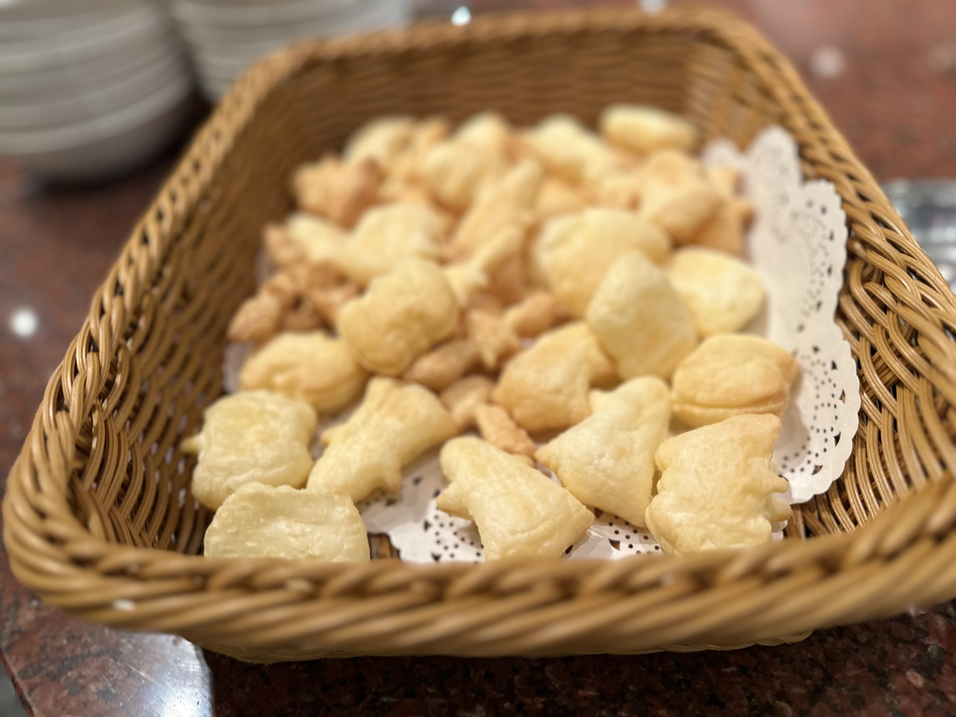 鮮やかな2色のチャーハン、グリーンとオレンジは何で出来てると思いますか?シェフにお聞きしました。スクランブルエッグに、それぞれ、色素を加えてハロウィンを演出されていました。ふんわりとしたスクランブルエッグと一緒に食べるチャーハン、ユニークな色ですが、お味は流石ホテルメイドの美味しさです。